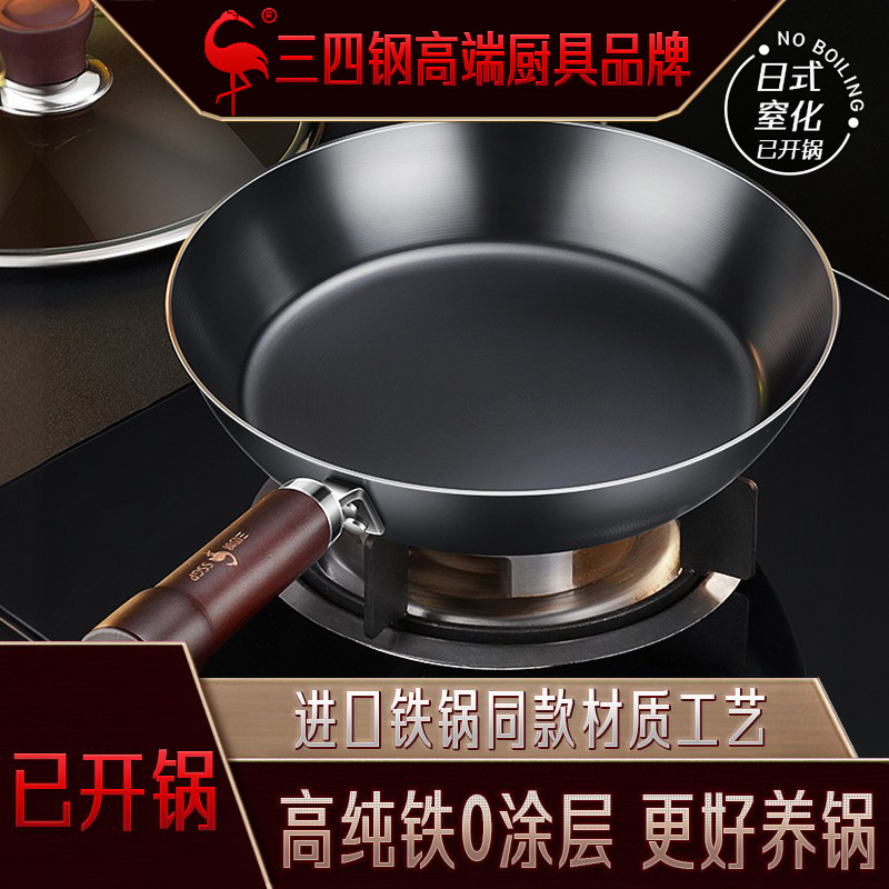 三四鋼無コーティングフライパン鉄鍋家庭用高純鉄窒息防錆0コーティング厚肉ステーキフライパン