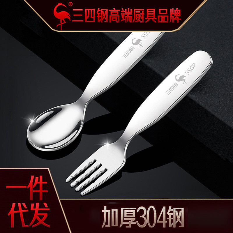 三四鋼子供スプーン食品級携帯スプーン家庭用食事304ステンレスフォークスプーンセット