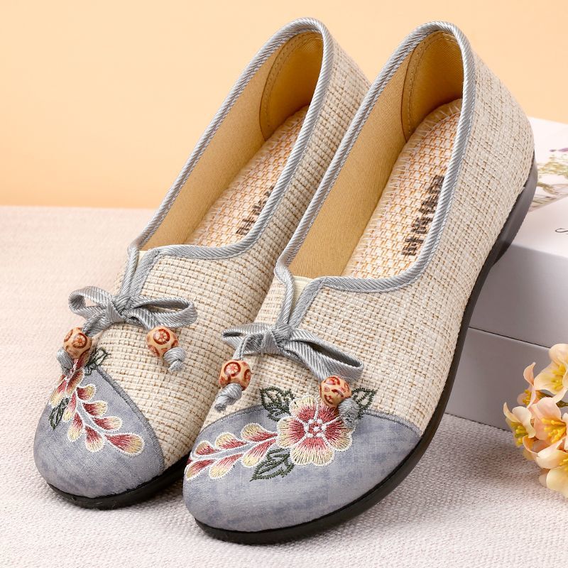 キャンバス婦人靴エスニックスタイル古い北京布靴リネン平底耐摩耗性浅い口スリッポンママシューズ柔らかい底