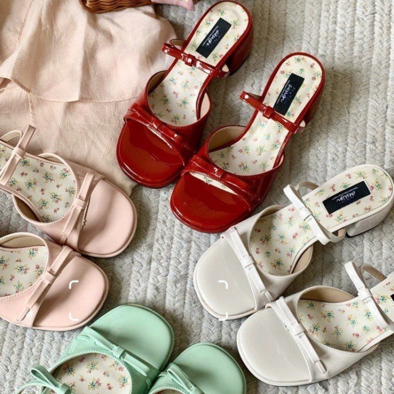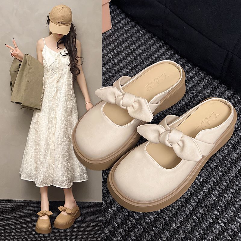 厚底蝶結びつま先ハーフスリッパレディースアウターウェア2025サマーサンダルフットウェアフレンチメリージェーンプラットフォームサンダル