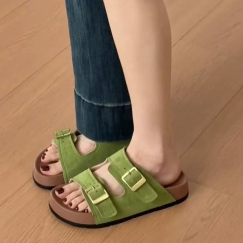 女性用厚底ビルケンシュトックシューズ 2025 新しい女性用サンダルとスリッパ、夏のアウターウェア、ハイエンドビルケンシュトックシーサイドビーチサンダル