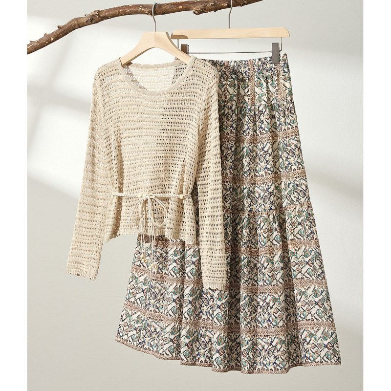 TERRE BLEUE ハーフスカートスーツ レディース 2025 夏新作 薄手ニット スリムハーフスカート 2点セット