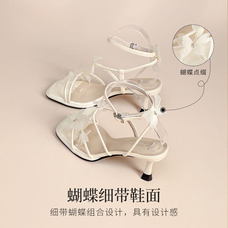 女性の靴薄型ヒールサンダル 2025 夏の新しい気質弓優しいイブニングハイヒール靴