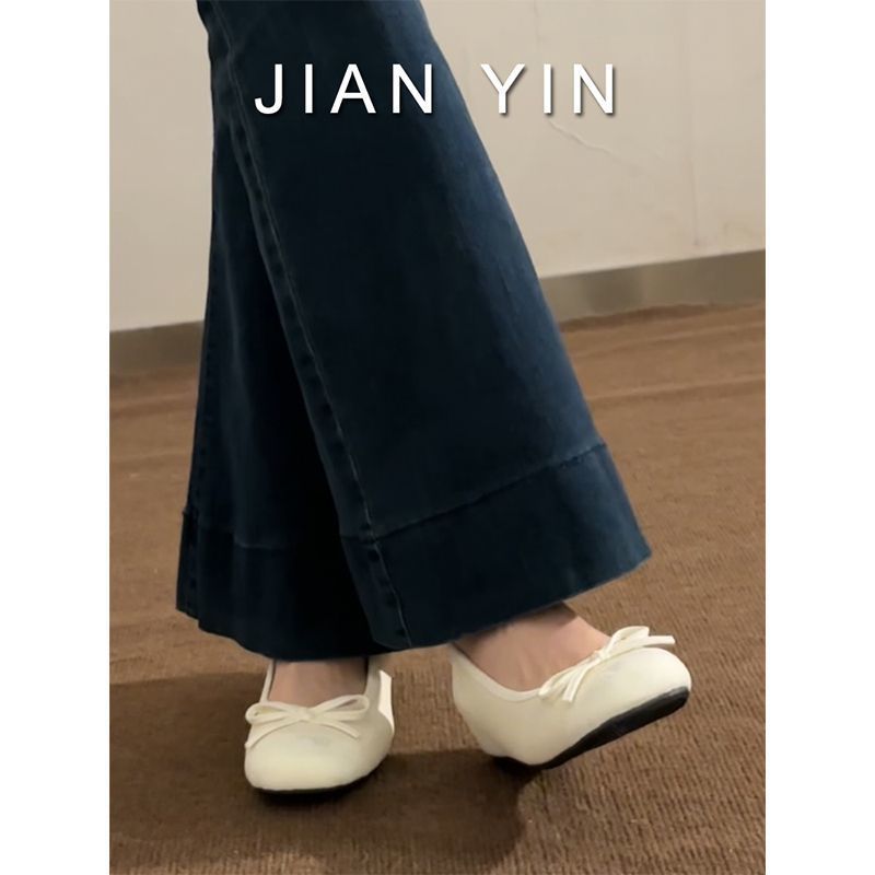 小柄な女性のための身長を伸ばすバレエスタイルの靴、フレンチリボンソフトソール通勤浅口ラウンドトゥメリージェーンシューズ