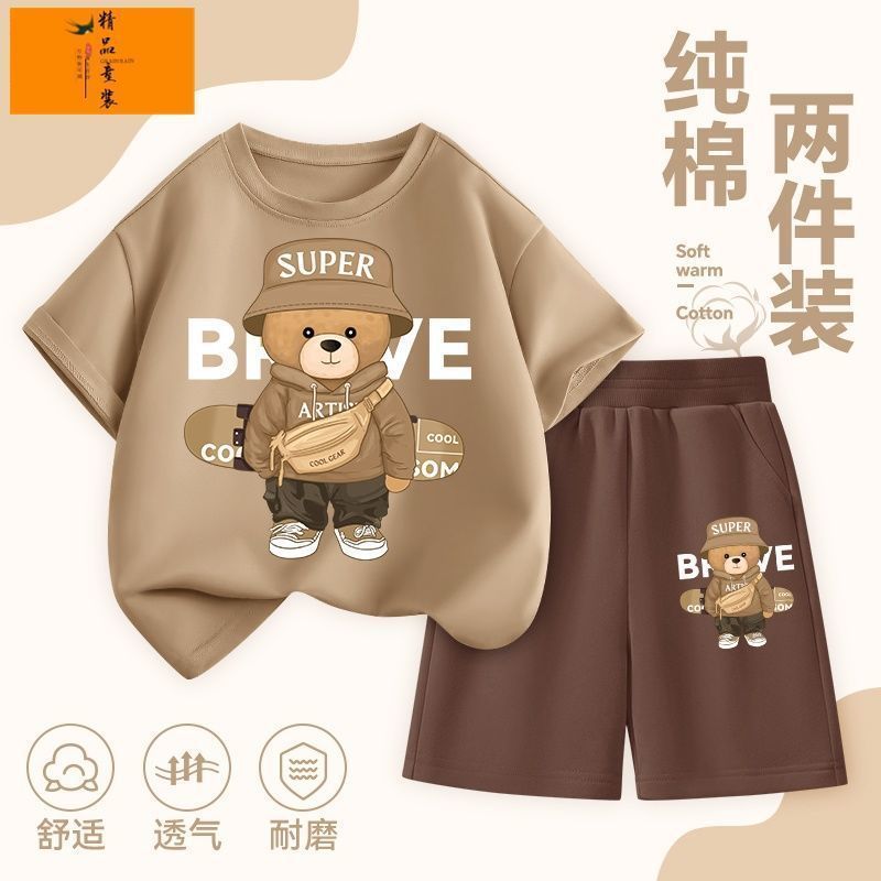 子供用半袖男の子スポーツパンツ新しいスーツ夏の男の子純綿カジュアル5点パンツハンサムなアウターパンツ