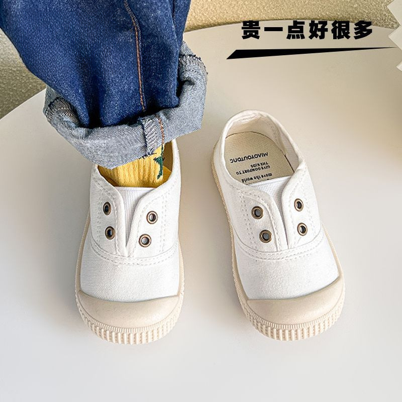 子供用キャンバスシューズ、子供用シューズ、新しいベビー屋内ソフトソールペダルカジュアルスニーカー、男の子と女の子の春と秋の白い靴