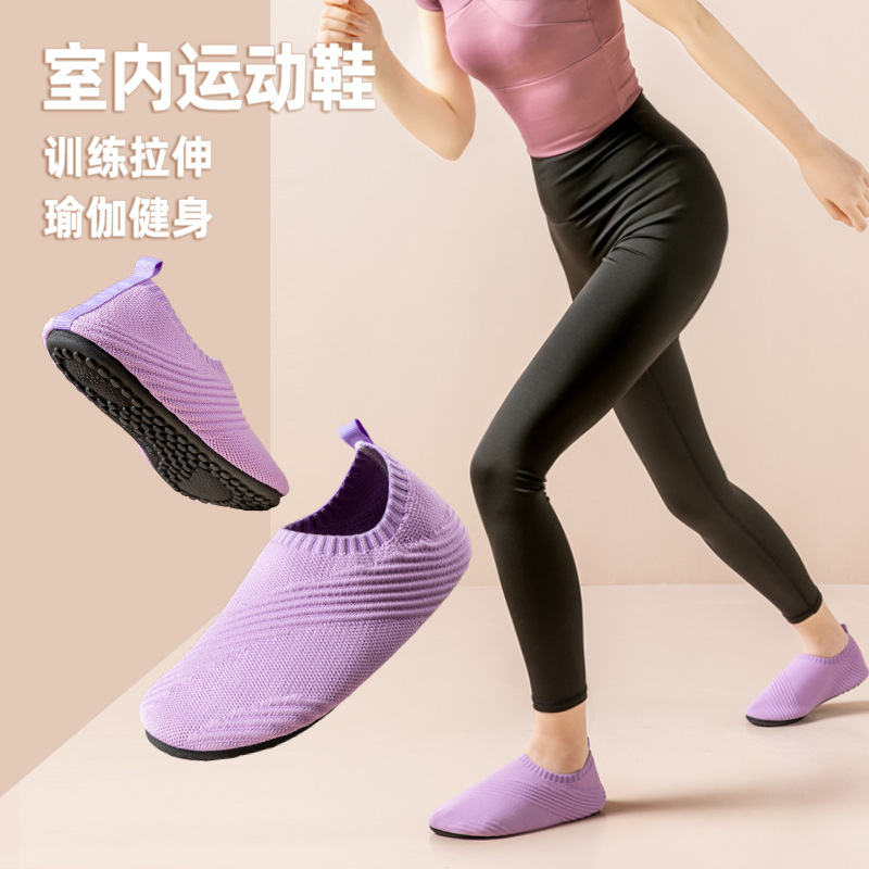 室内のヨガの靴の女性の家庭用の柔らかい底の滑り止めの家庭はフィットネスの靴のダンスの専用の総合的な飛織の訓練靴を跳びます。