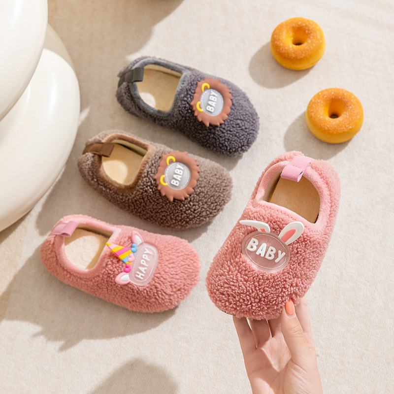 子供用綿スリッパ、幼児用秋冬室内用滑り止めソフトソール、男の子と女の子の赤ちゃん用毛皮綿靴、子供用モデル