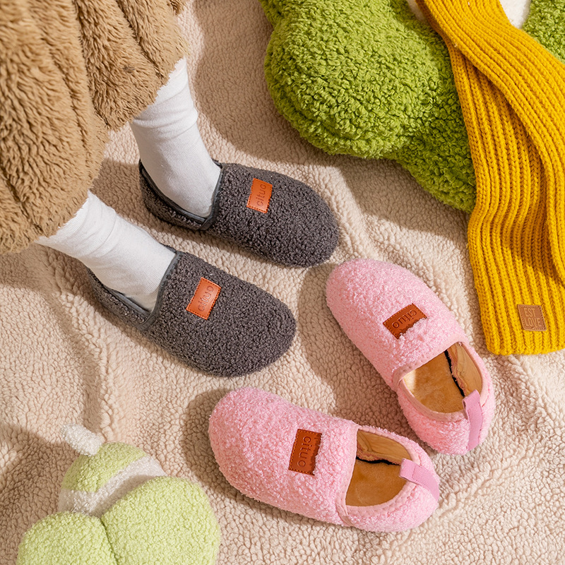 冬の室内の床の靴とベルベットの厚い綿の靴の滑り止めの柔らかい底の男女の室内の家の靴の羊の羽毛の豆の靴