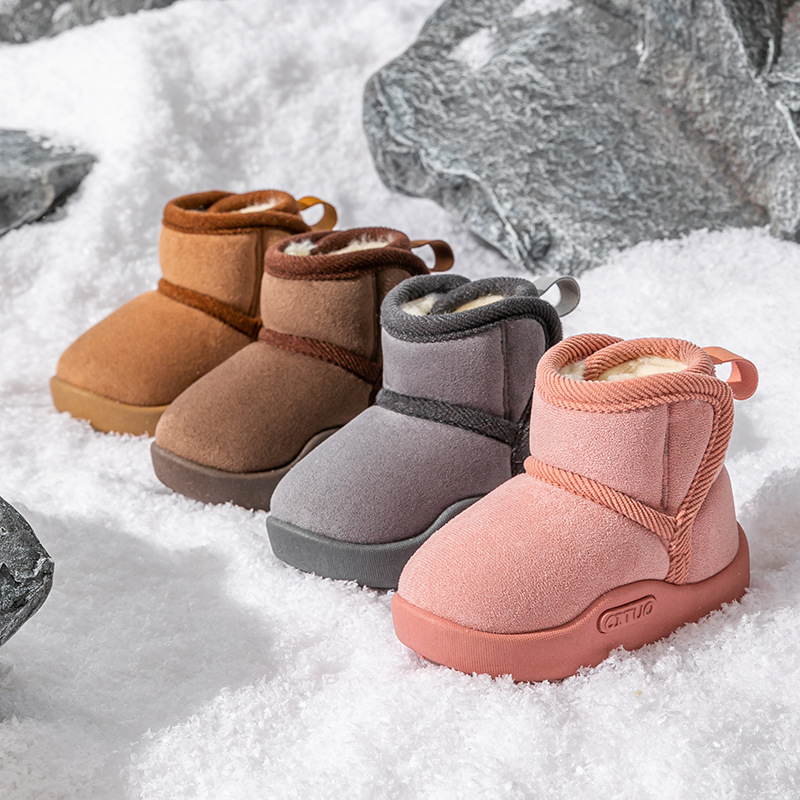 子供用冬の新作スノーブーツ、厚いベルベット、滑り止め、柔らかい靴底、ダブルマジックテープ、しっかりとした固定、男女兼用ベビー用暖かい綿靴