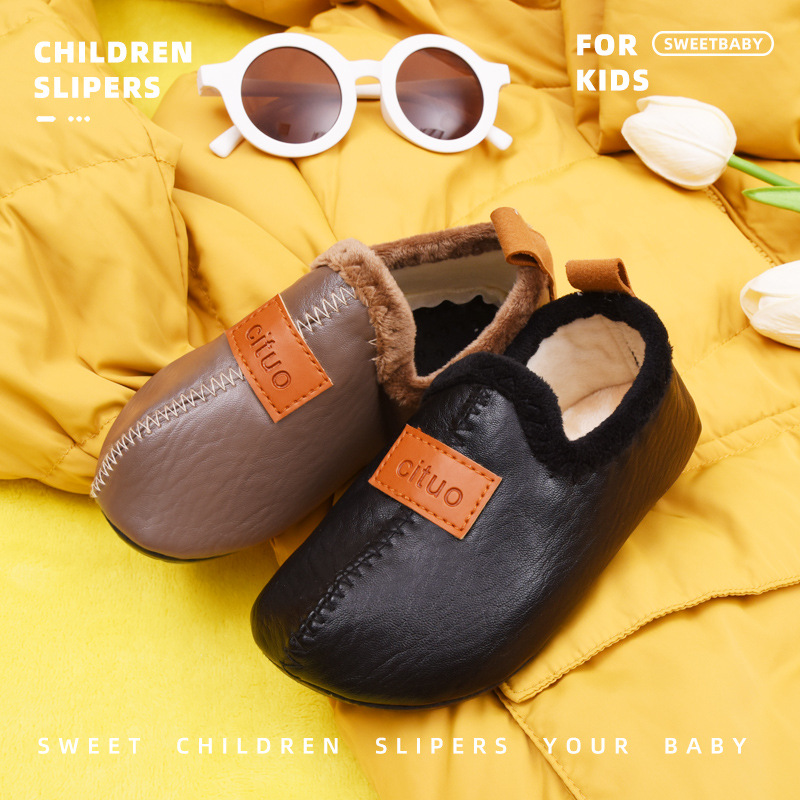 新しい子供用綿靴、テディベルベットの裏地付きベビー綿靴、冬用滑り止めソフトソール子供用フロアシューズ、柔らかいソール