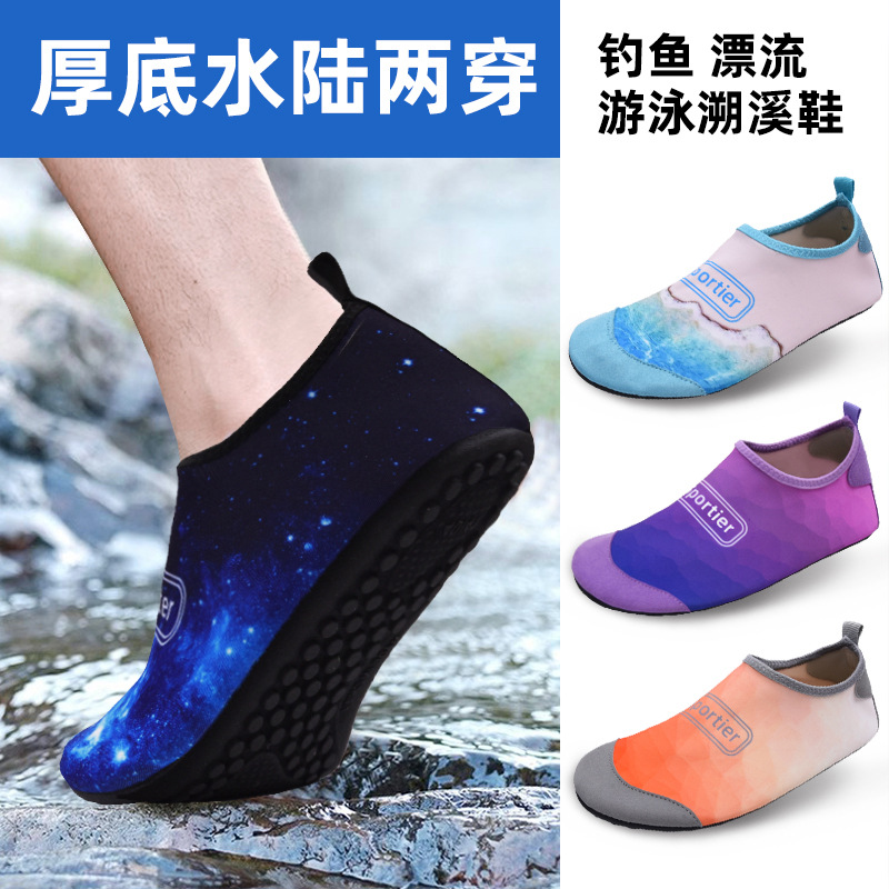 国境を越えた水泳靴は、川を越えた浮潜靴男女水上楽園の厚い底の通気性に滑り止めビーチ靴を貼る