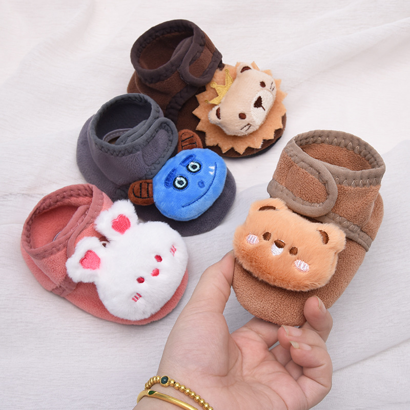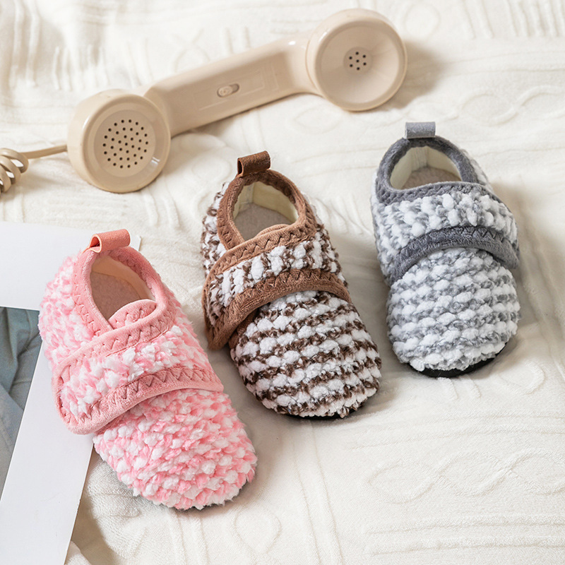 秋冬の新型の床の靴下の靴の室内の子供の家の保温の綿の靴とベルベットのマジックは男女の朝に靴下のカバーを教えます。