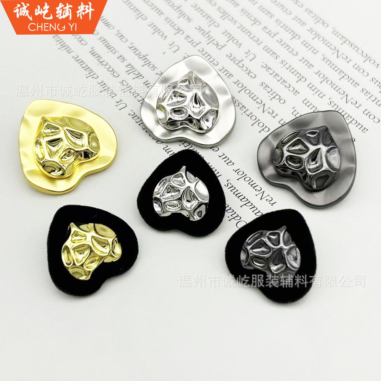 レトロな不規則なハート型のしわ面の金属の植毛の双合ボタンのコートのセーターのニットの装飾のボタン