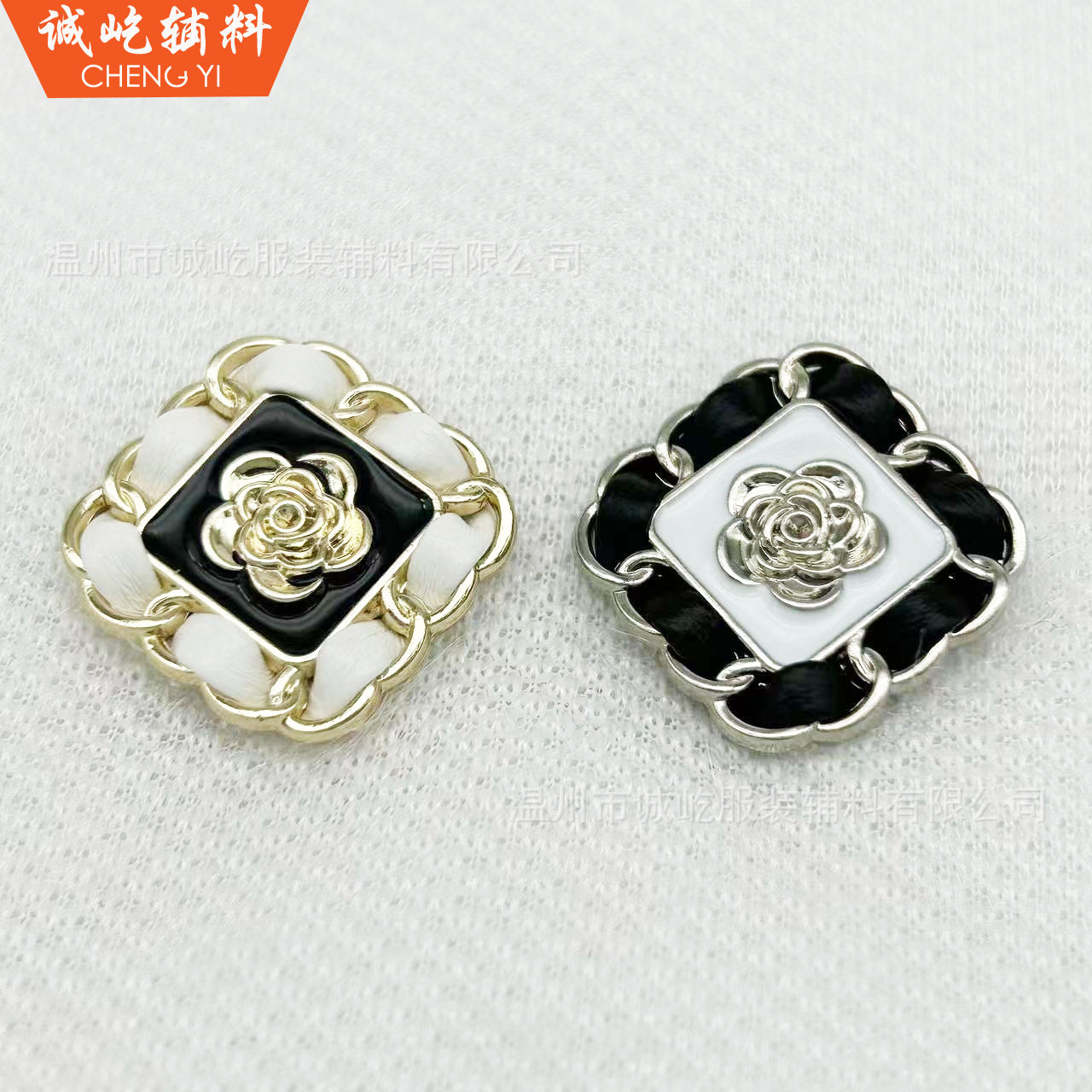 小香風編み紐装飾ボタン角型波辺花模様金属手縫いセーターニットアクセサリー