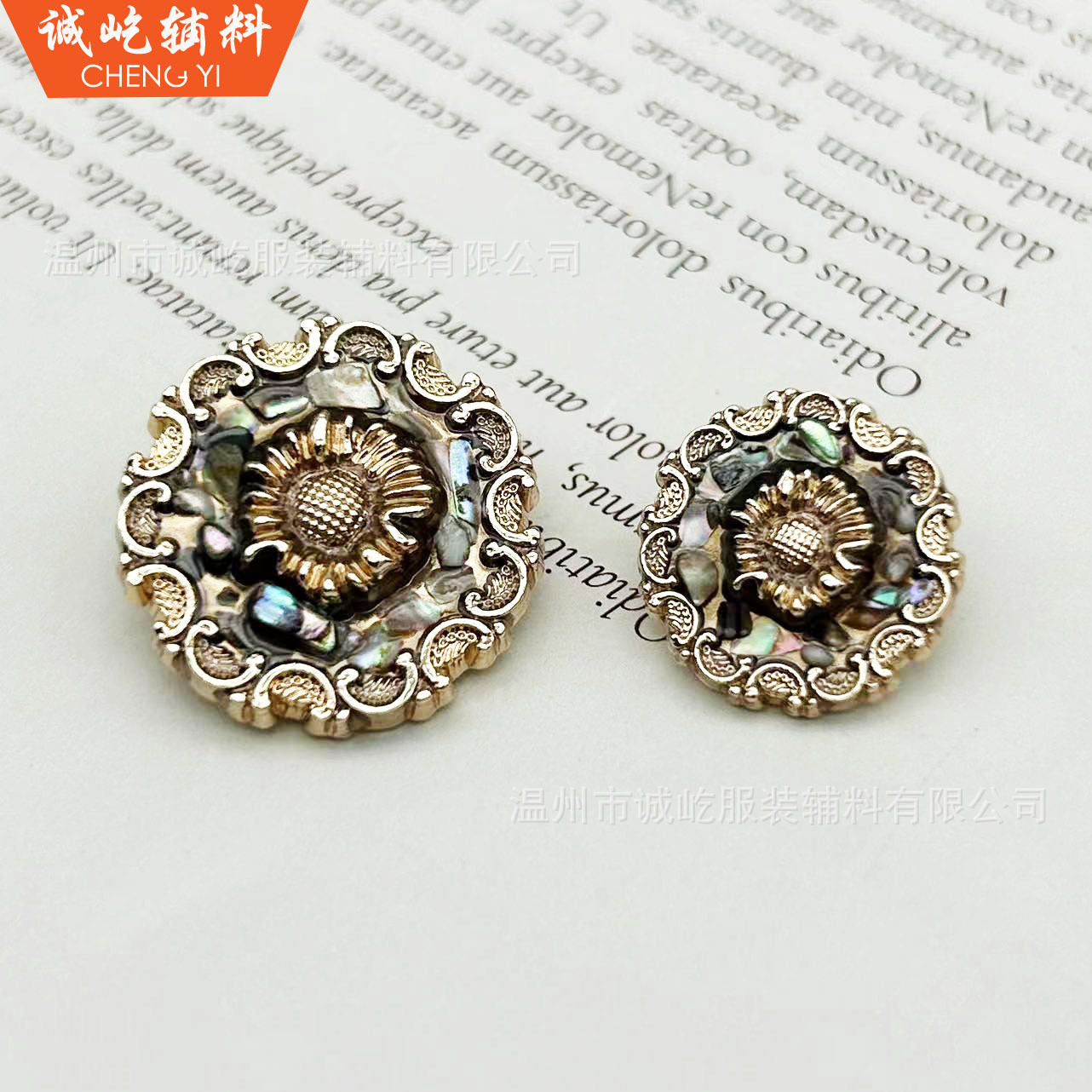 レトロ小香風花ボタン金属貝殻小破片点油装飾ボタン