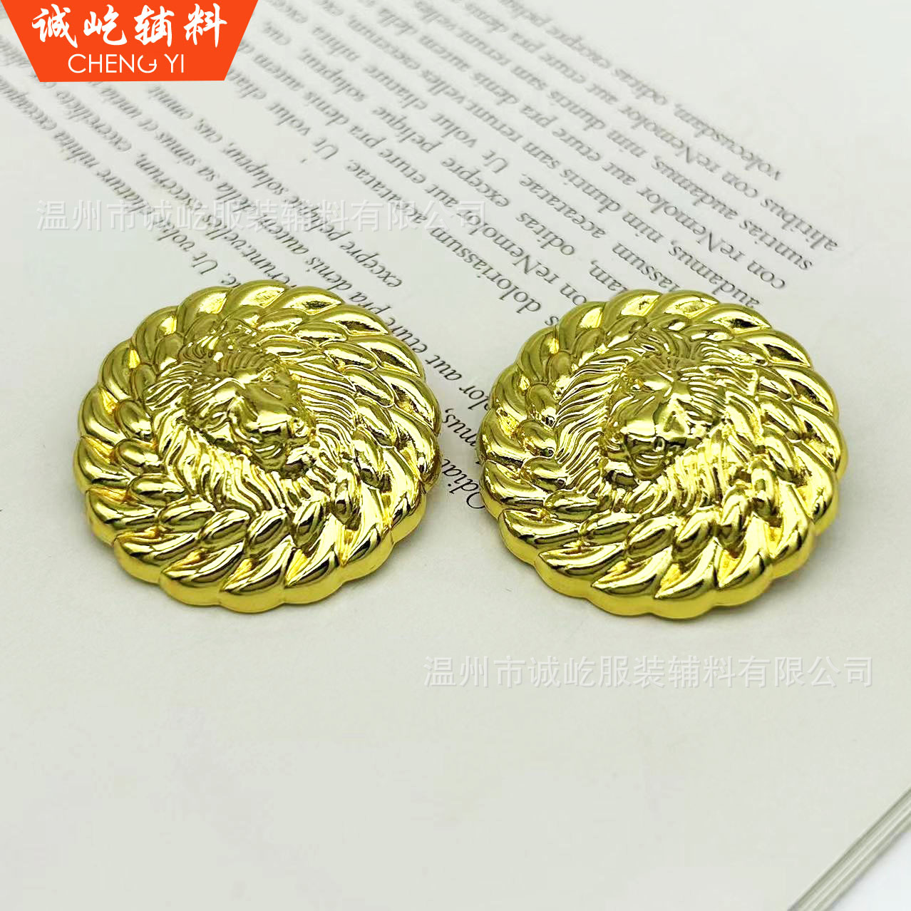 新商品の現物の大きいサイズのライオンの頭の金属のボタンのコートの風衣のセーターのニットのコートのドアの襟はボタンを飾ります。