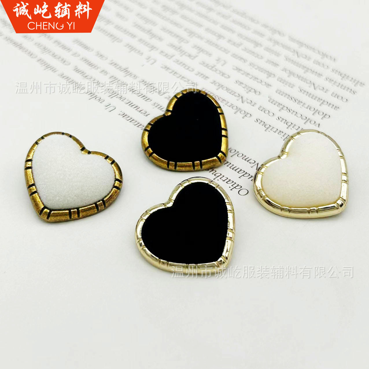 卸売りのレトロなハート型の手縫いは桃の心の植毛の表面の金属のボタンのオーバーのセーターのニットのドアの襟の装飾のボタンを掛けます。