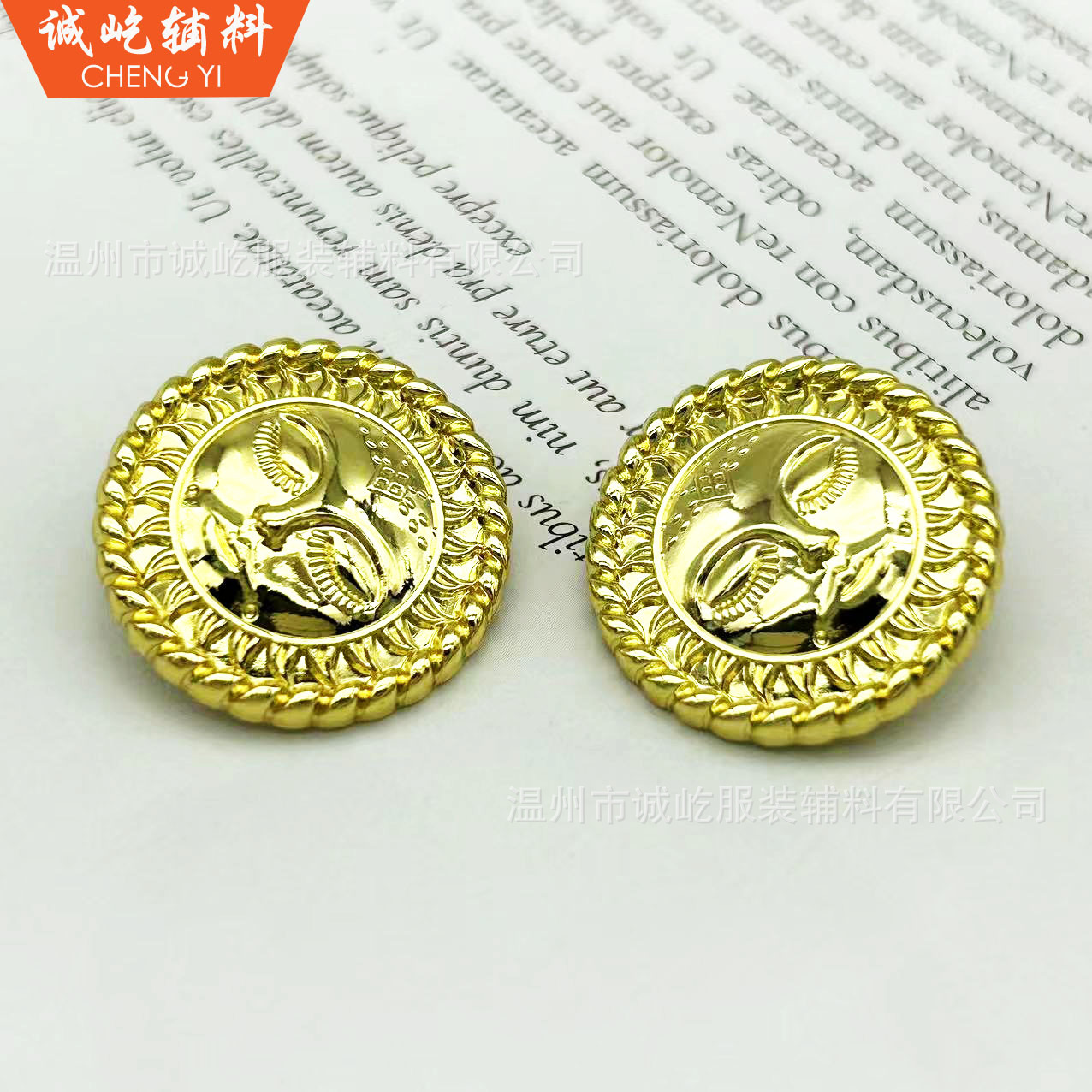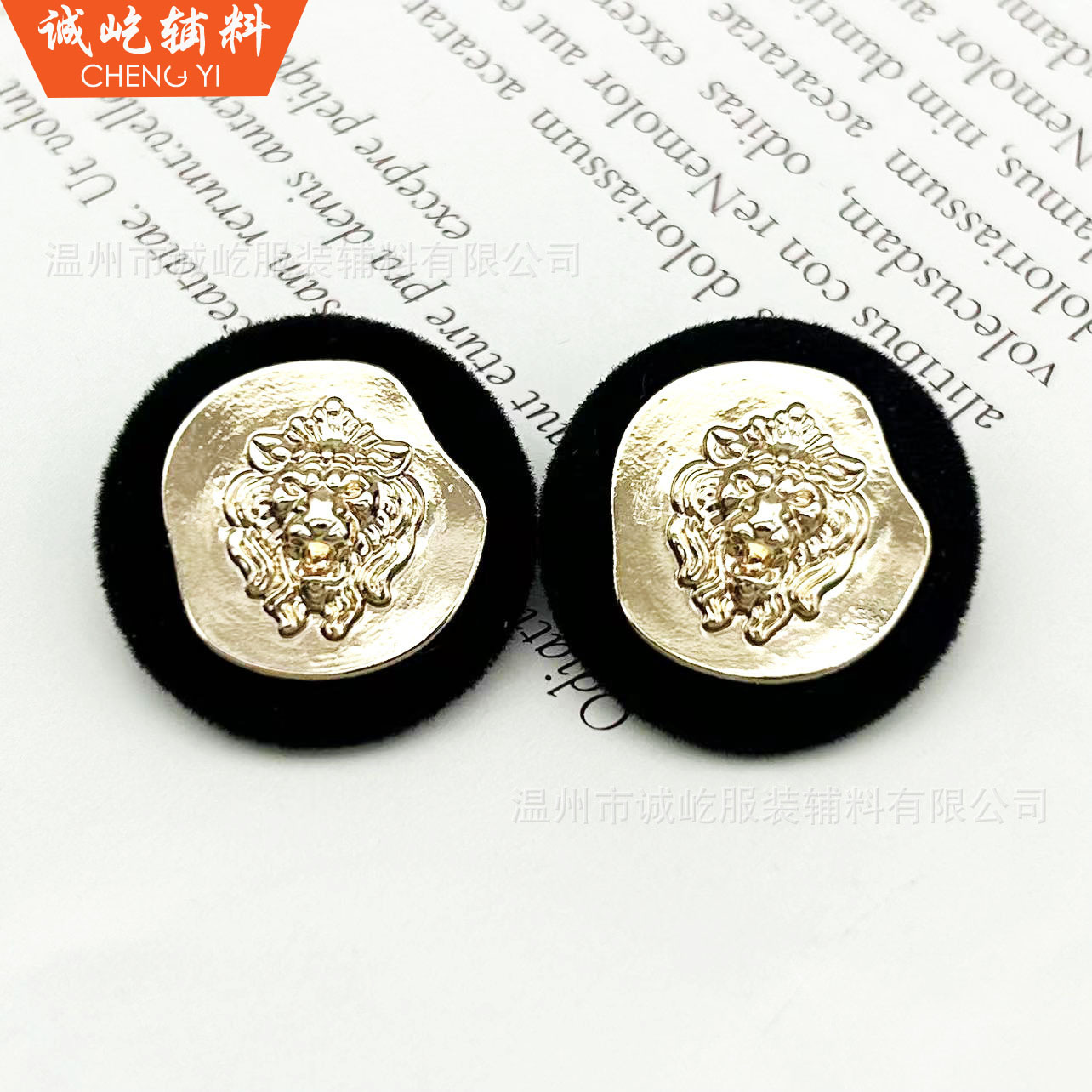 小香風獅子頭ボタン黒金色植毛二重組み合わせボタンコートセーターニットの襟飾りボタン