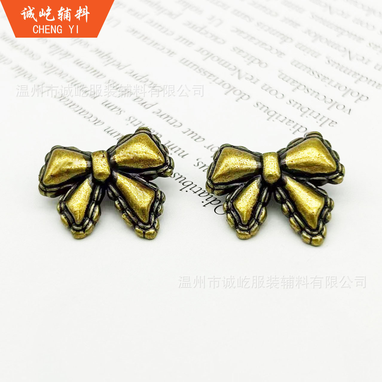 新しいレトロな金色の蝶結びの形の金属ボタンのセーターのニットのドアの襟の装飾のボタン
