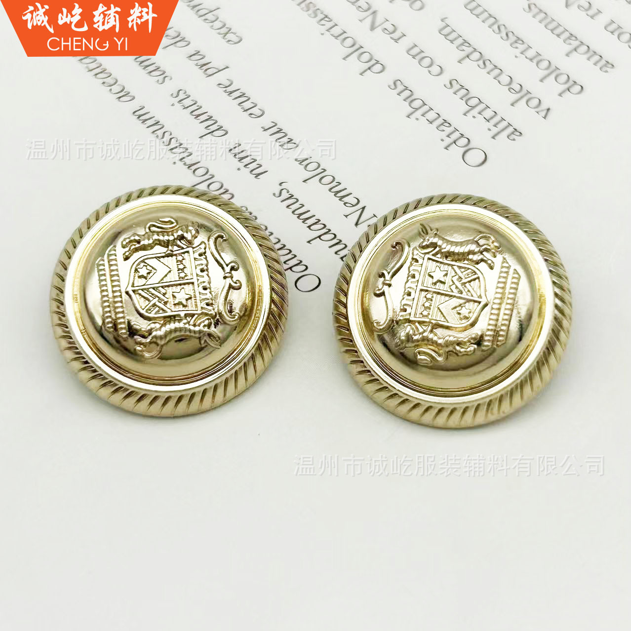 英倫レトロ双獅子クラウン金属手縫いボタンコート風衣スーツセーターニットドア襟飾りボタン