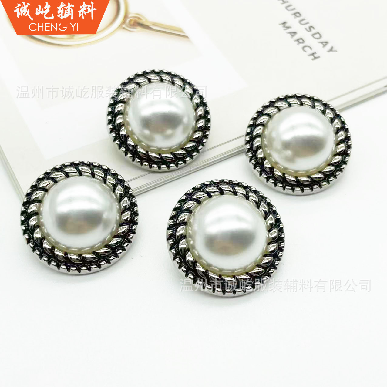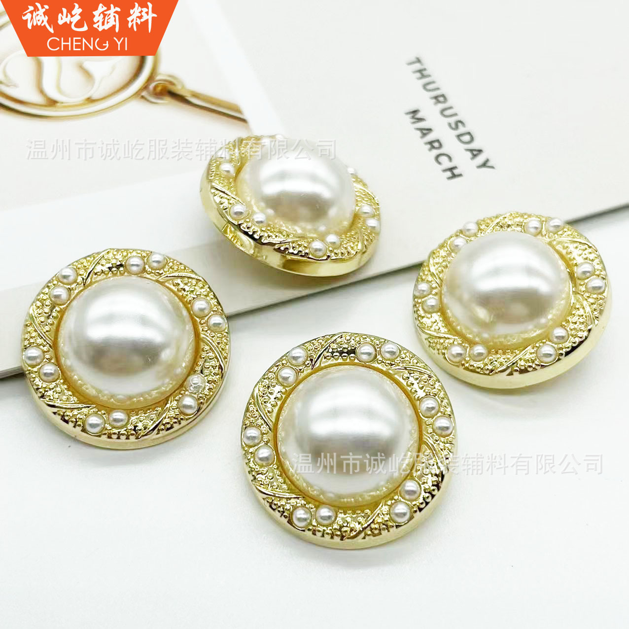小香風真珠ボタン女装上着ファッション百合金属装飾ボタン高品質合金手縫いボタン