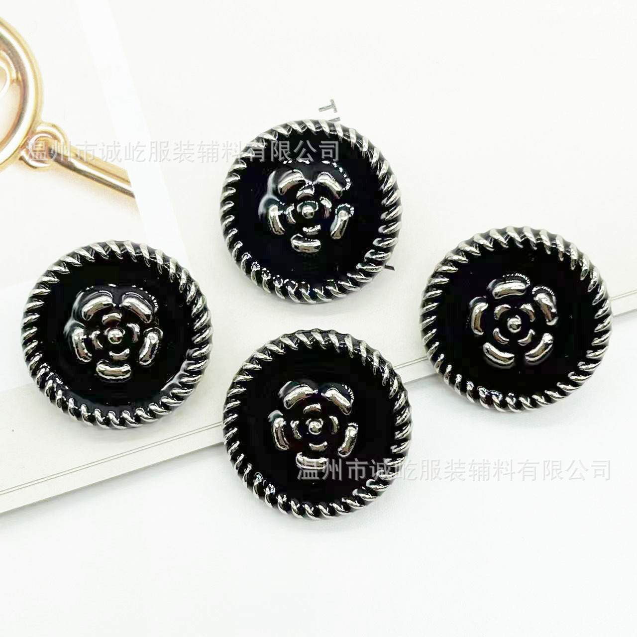 黒い植毛金属の組み合わせボタン名媛小香風ファッションドアの襟飾りボタンカシミヤコートボタン