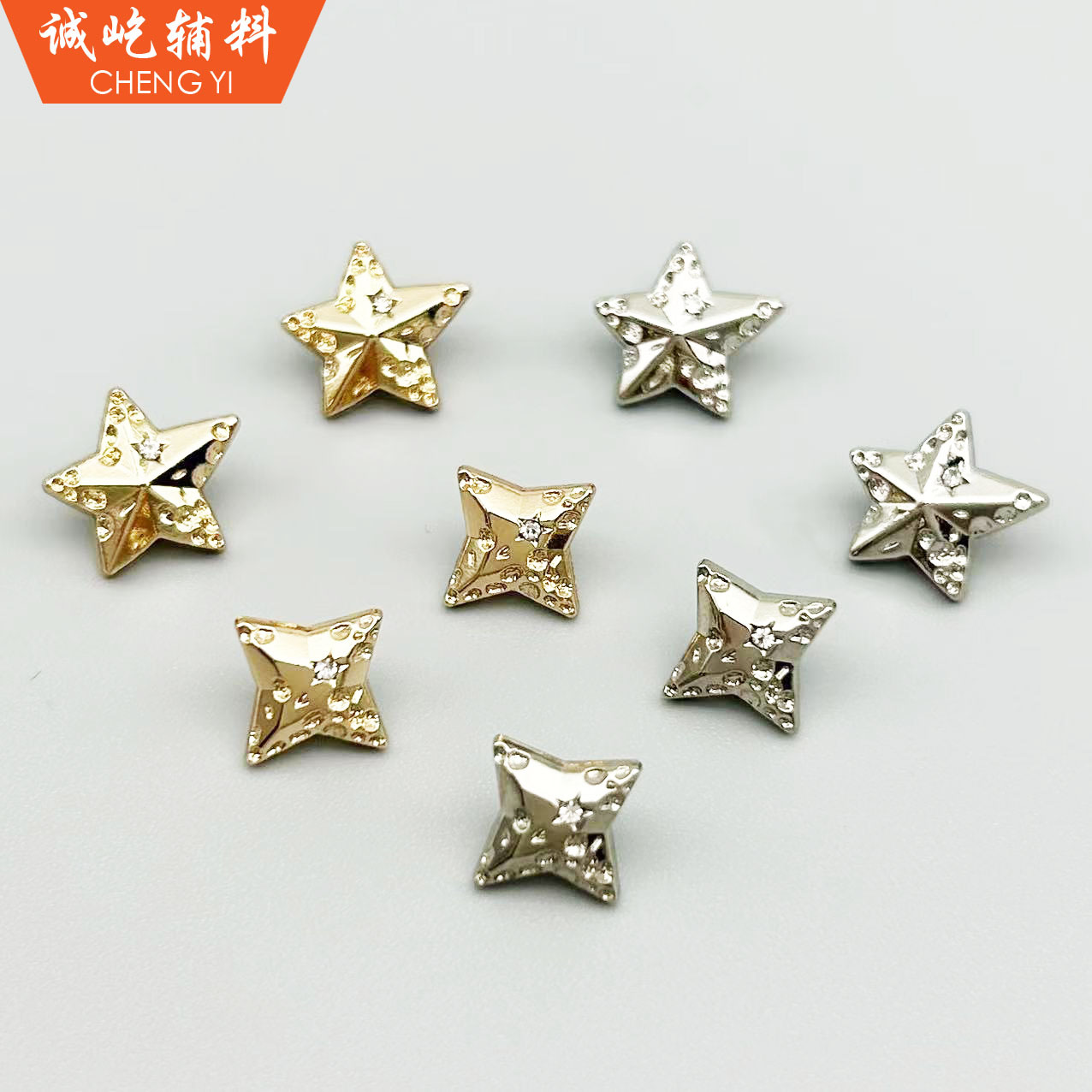 五角星四角星ボタンセーターシャツファッション金属縫い目ボタン金色の明るい白い星点ドリルボタン