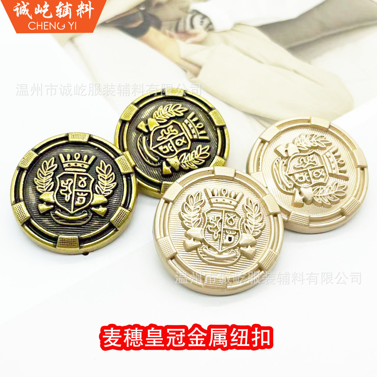 ファッションシンプル麦穂クラウン金属ボタンjk英倫装飾ボタンスーツ制服コートドア襟ボタン