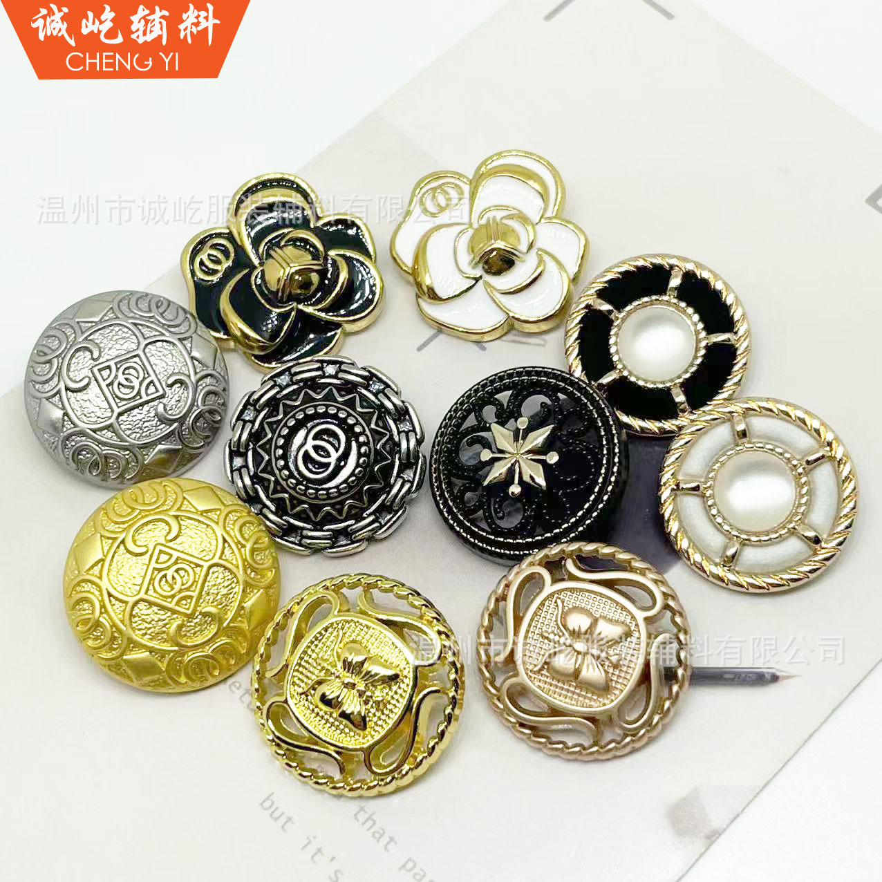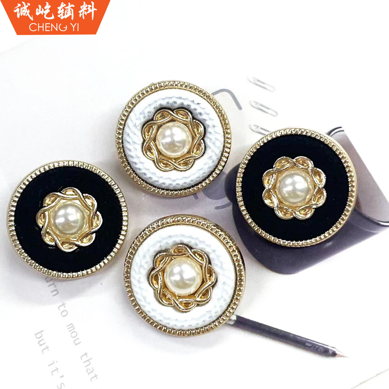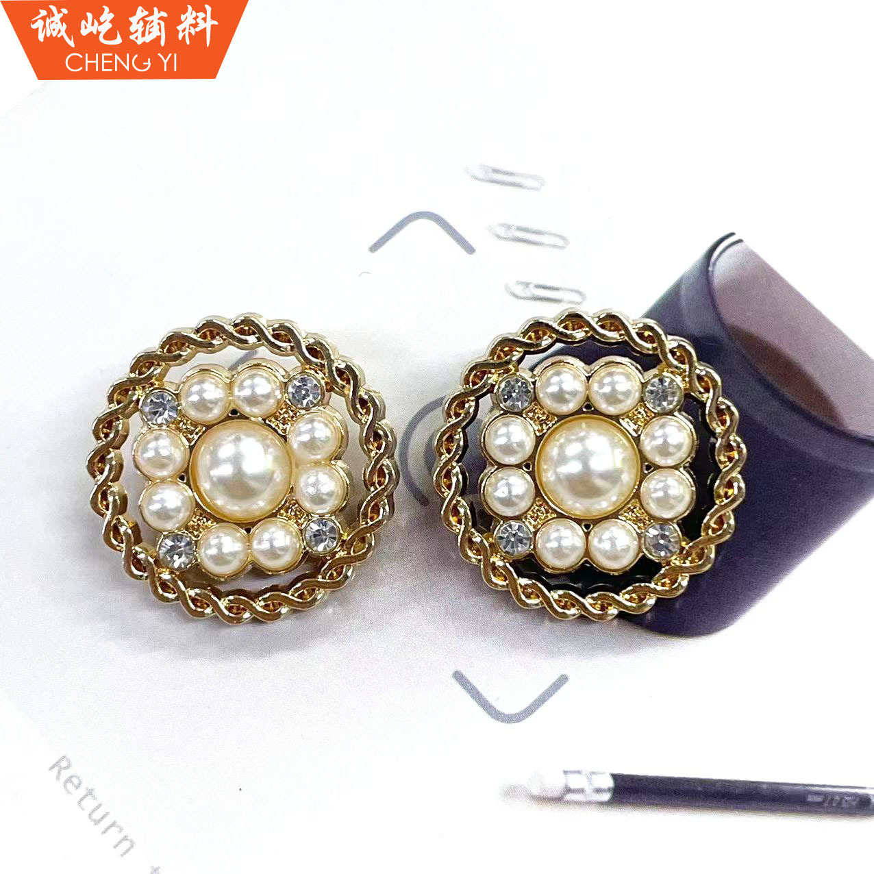 小香風金属の透かし彫り真珠にボタンを入れるセーターのカーディガンの前立て飾りの2つの現物の量が多くて、値段が優れています。