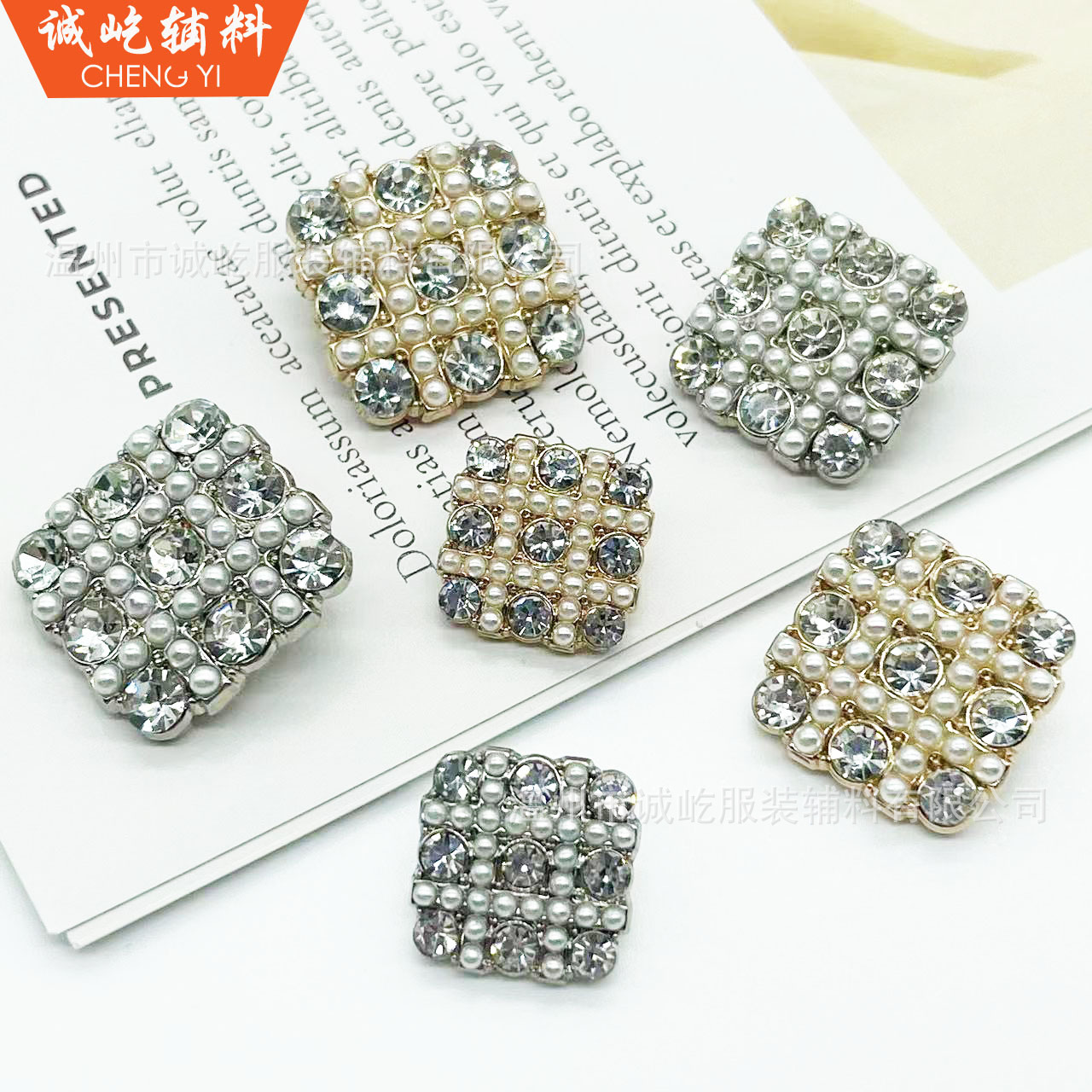 ファッションの四角形の真珠のダイヤモンドは小さい香りの風のセーターのカーディガンのシャツの前立ての装飾のボタンの大きい価格を掛けます。