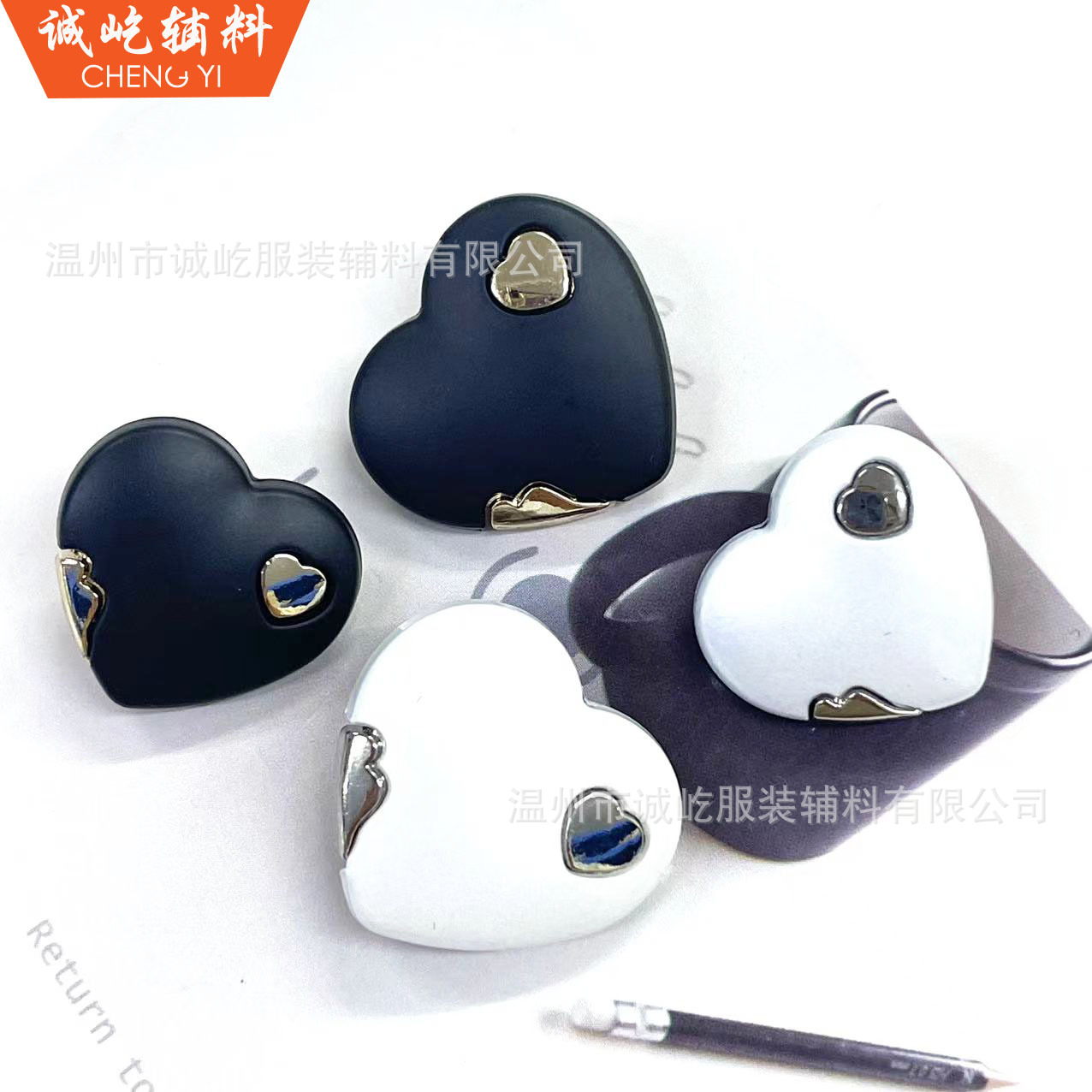 創意黒白色愛桃ハート型金属ボタン小香風ファッションドアの襟飾りボタン