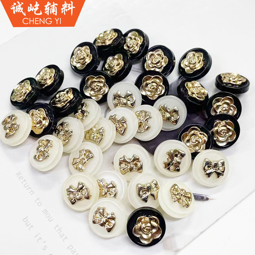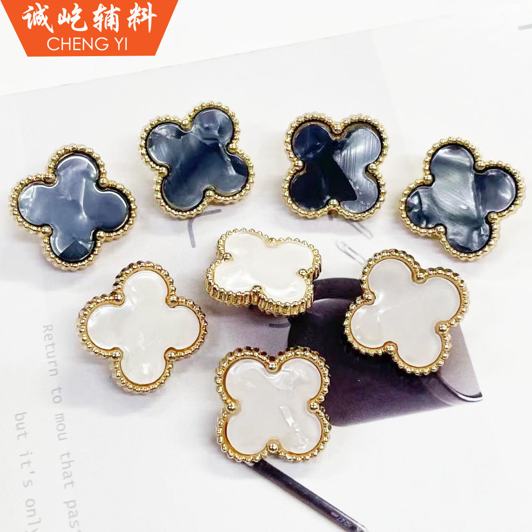 四葉草形ボタン小香風セーターニットカーディガンの前立てボタン金属樹脂組み合わせ手縫いボタン