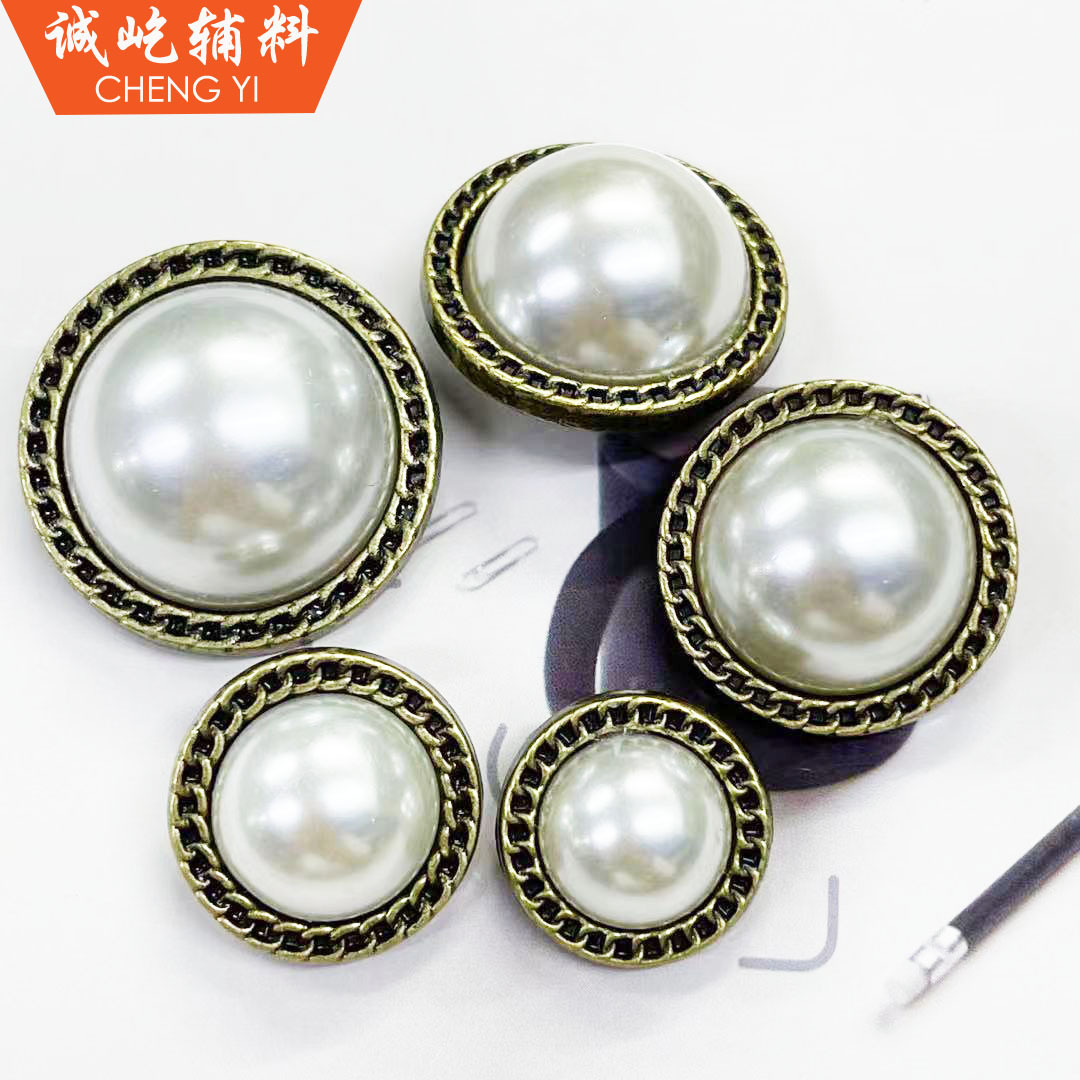 青銅の真珠のボタンの金属のハイライトの真珠の組み合わせは小さい香風のコートのセーターのニットのカーディガンのドアの襟の装飾のボタンを掛けます。