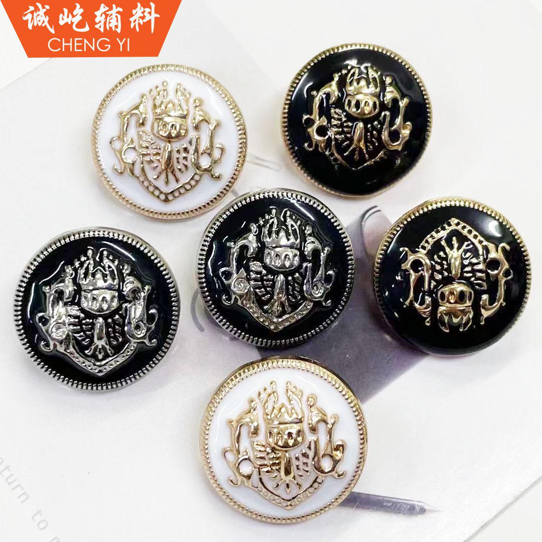金属ボタン円形双獅子クラウン合金ボタンコートスーツの前の襟ボタンセーターのカーディガン装飾ボタン