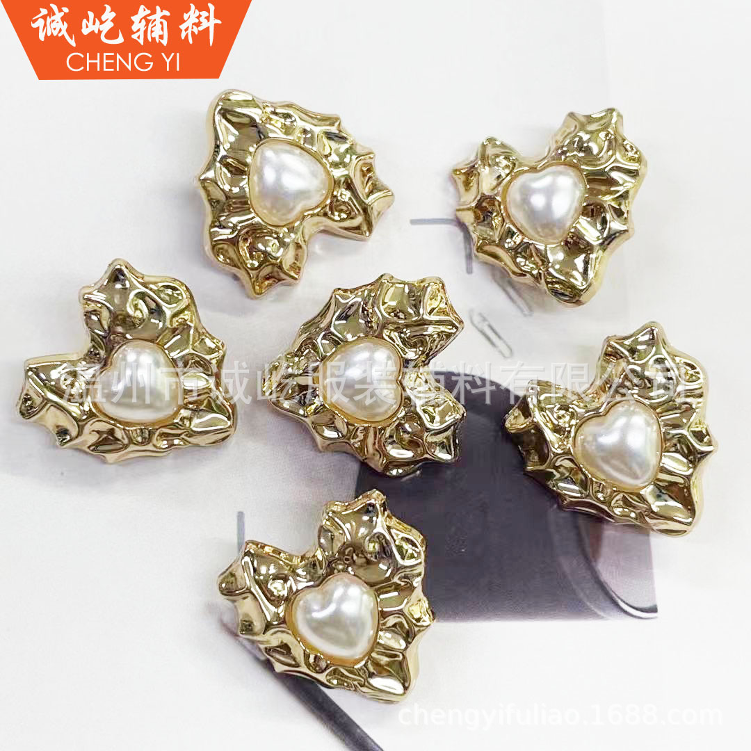 ハート型金属真珠ボタン小香風セーターカーディガン前立て飾りボタンコートスーツ前立て飾りボタン