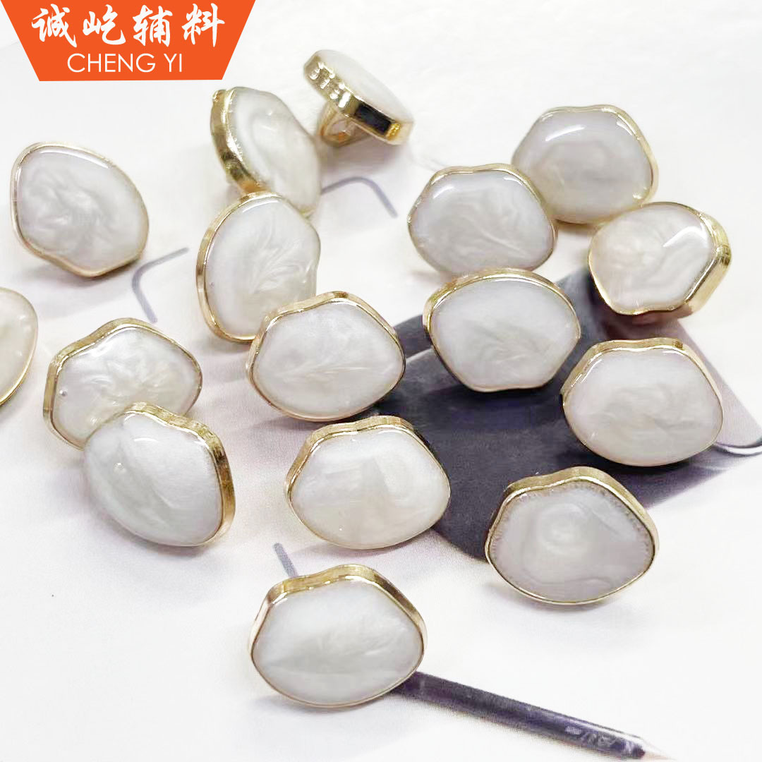 異形金属の縫い目は金の縁の白い真珠の光の油のボタンのセーターのカーディガンのドアの襟を掛けてファッションのシャツの縫い目を掛けます。