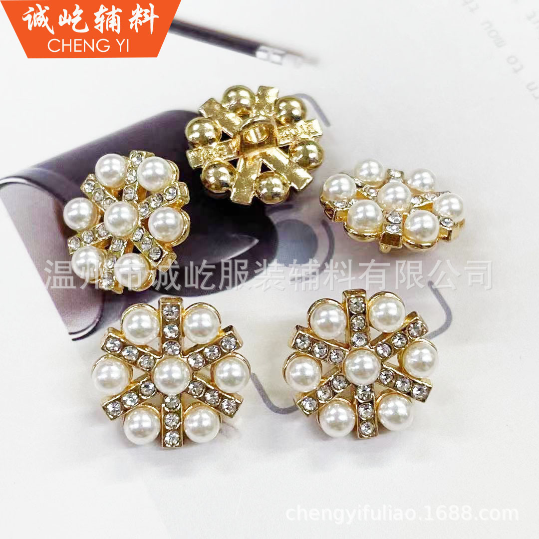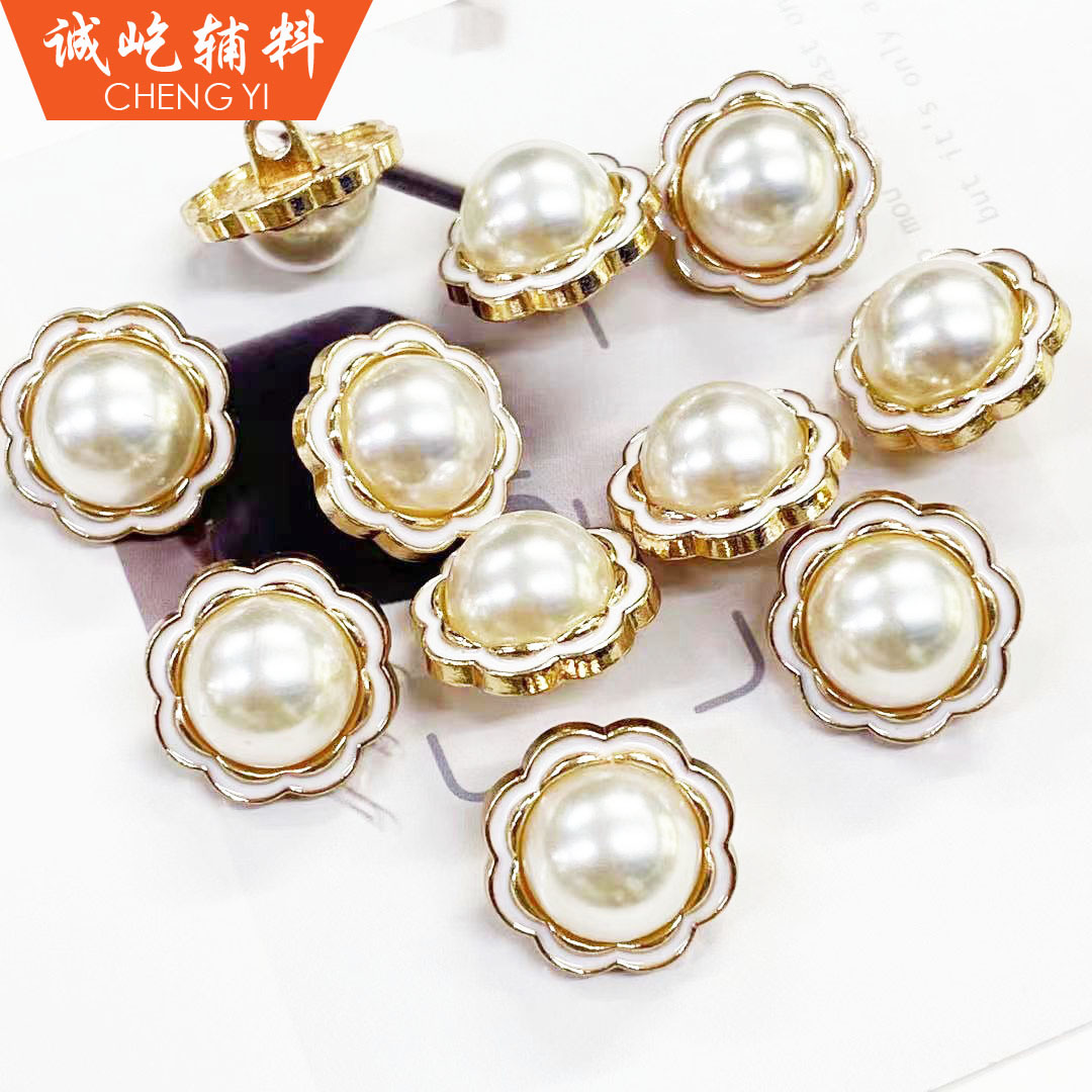 【小香風真珠水ドリルボタン】ファッション花型ボタンセーターニットカーディガンシャツ飾りボタン