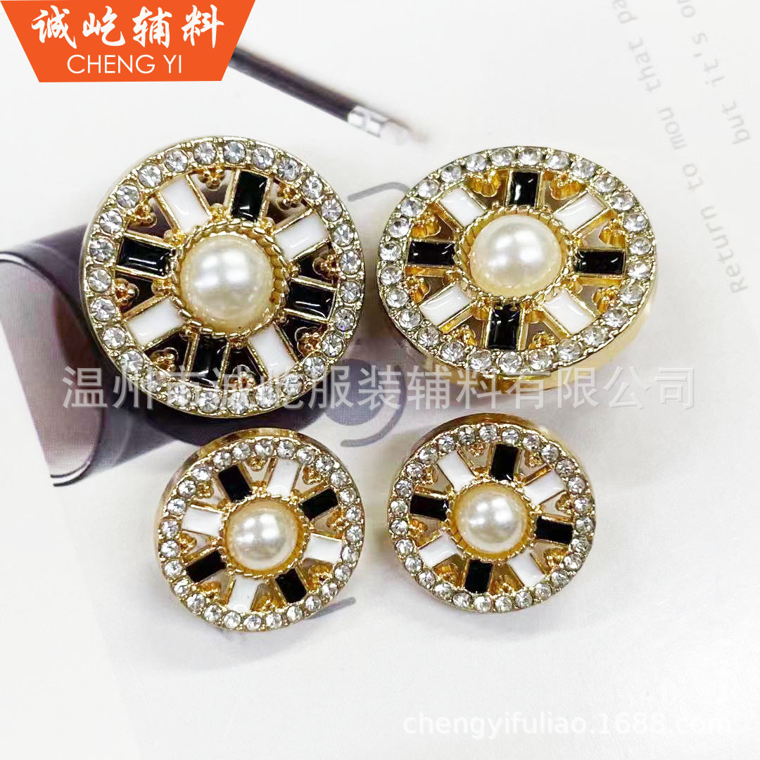 【小香風ボタン】円形金属透かし彫り白黒オイルにドリルボタンを入れたセーターのニットカーディガンのファッションボタン