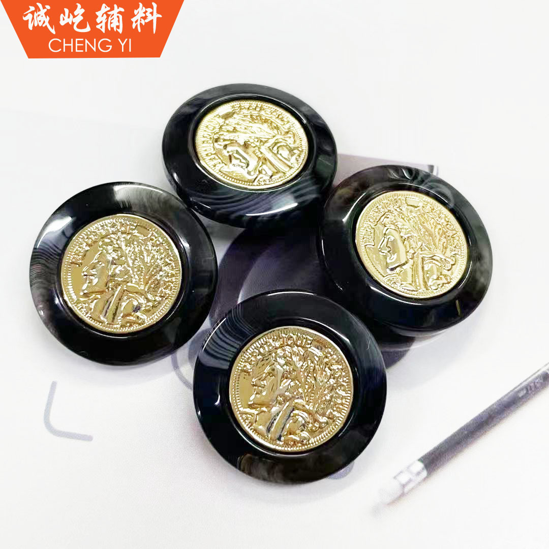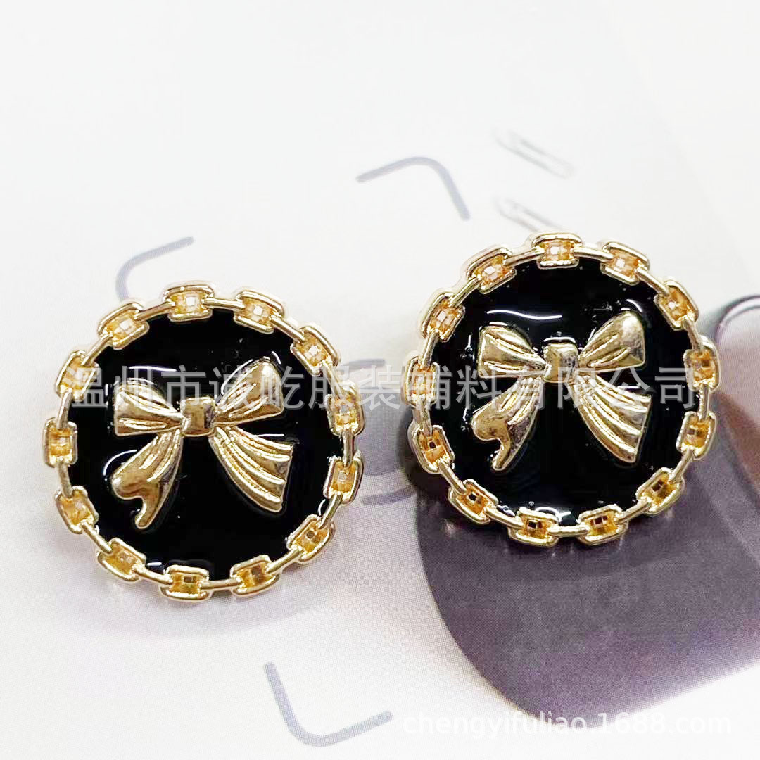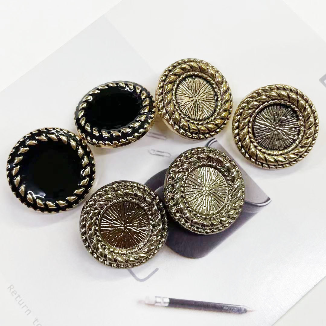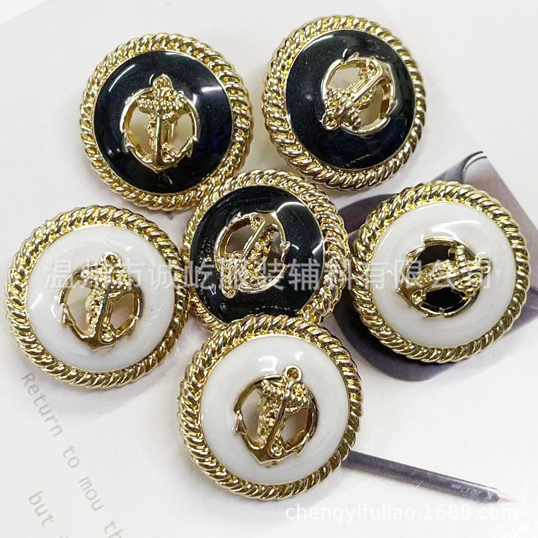 【小香風ボタン】円形金属アンカーポイント白黒オイルボタンコートスーツセーターカーディガンボタン