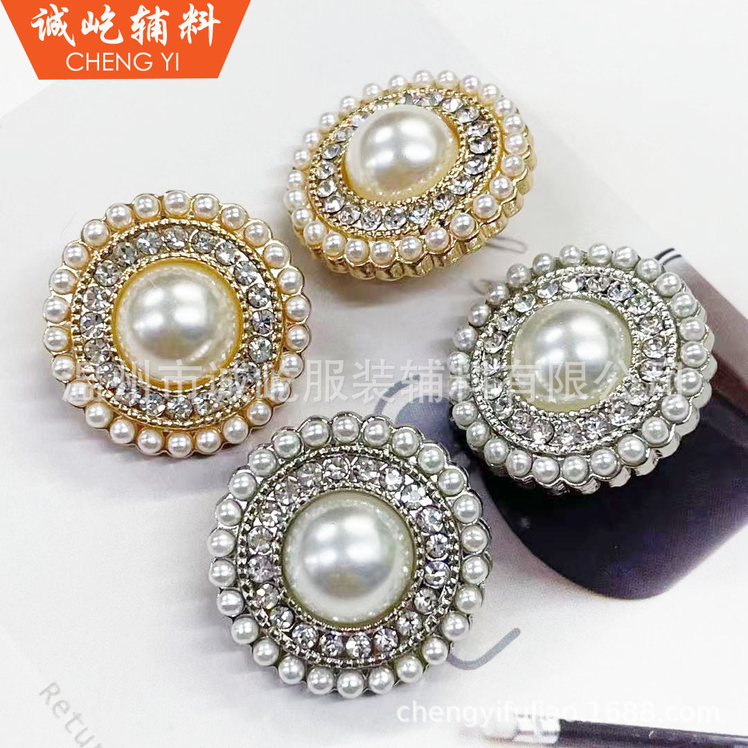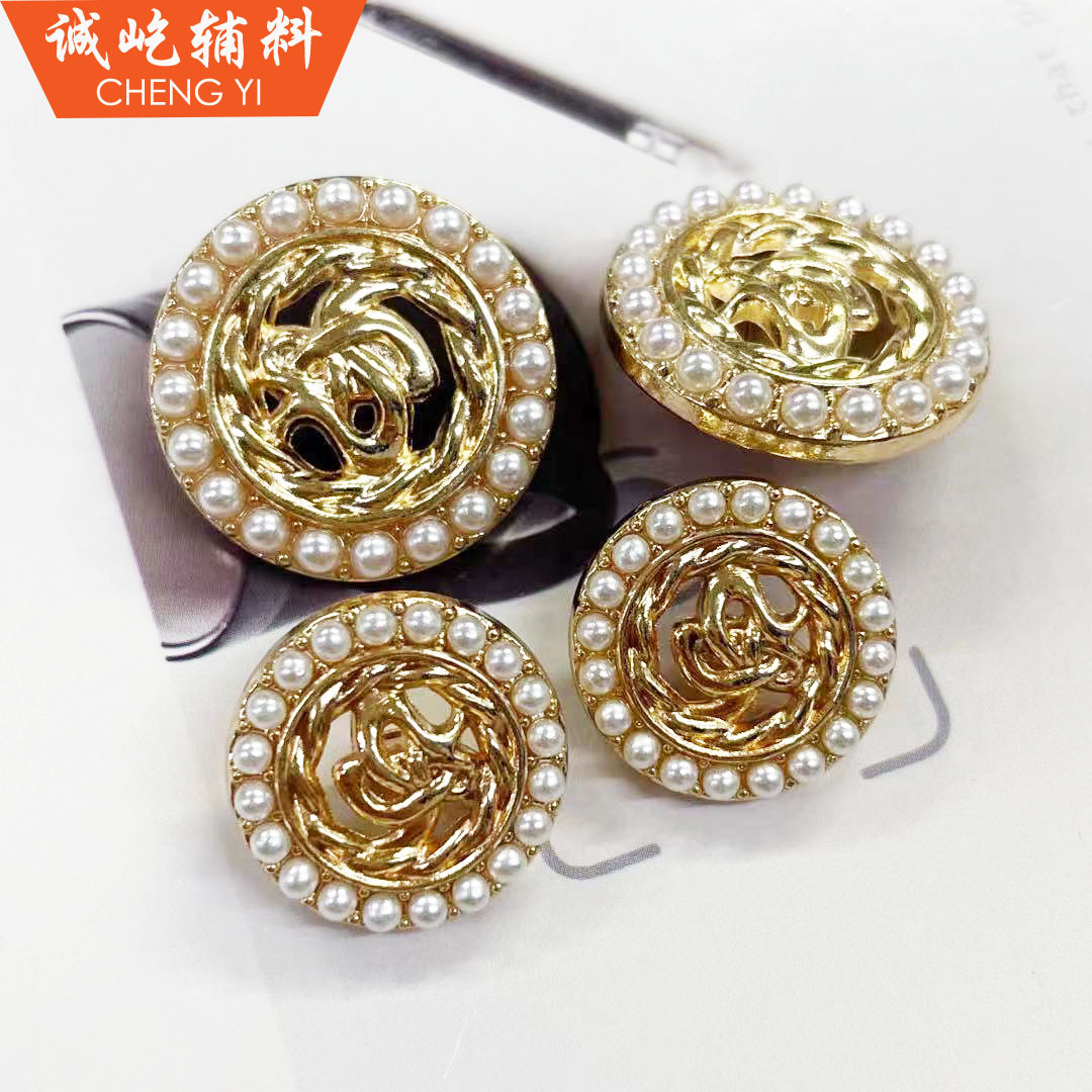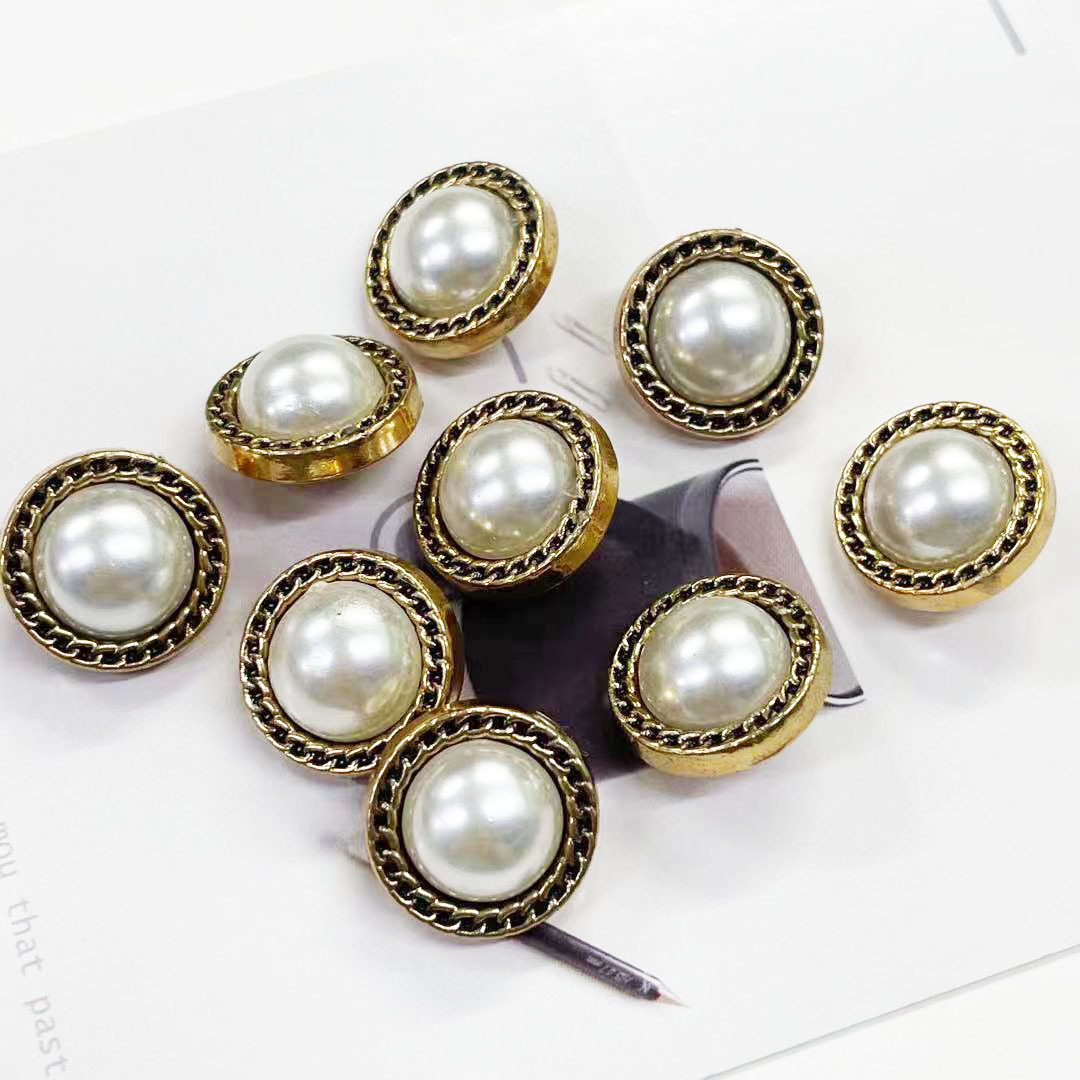 【金色真珠にドリルボタンを入れる】円形金属手縫い真珠ボタンコートセーター小香風ファッション装飾