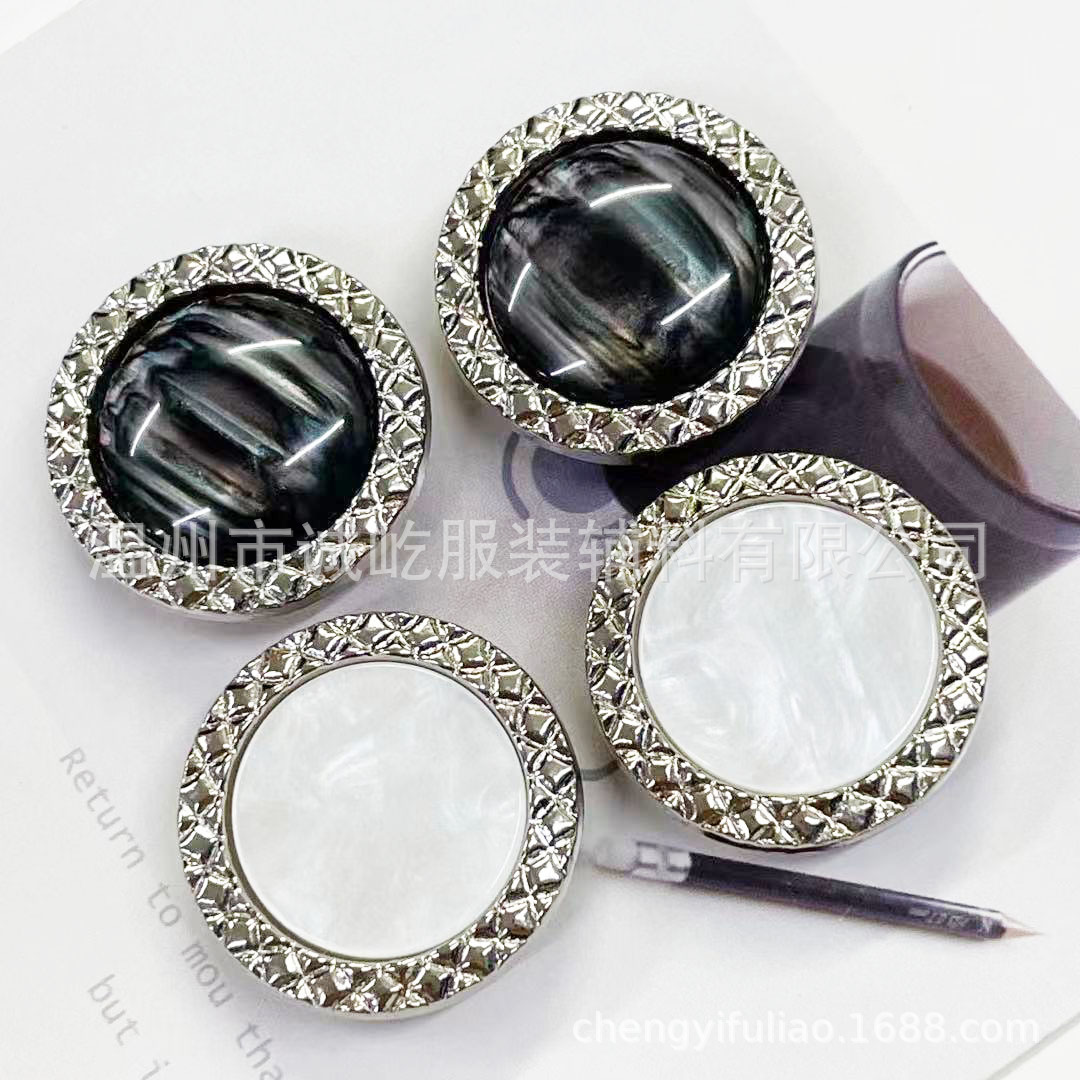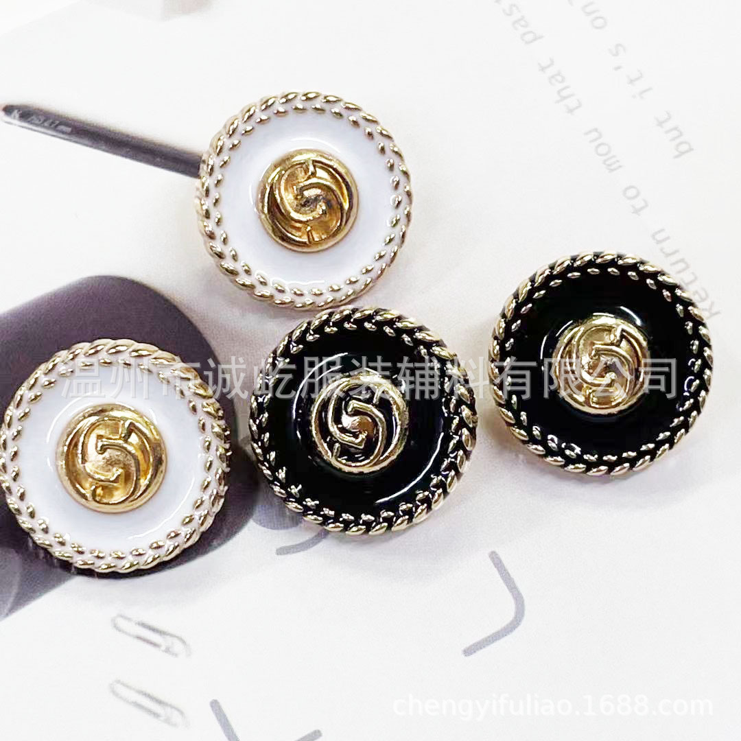 【金属樹脂ボタン】コートスーツボタン金辺白黒手縫いセーターニットカーディガン襟ボタン
