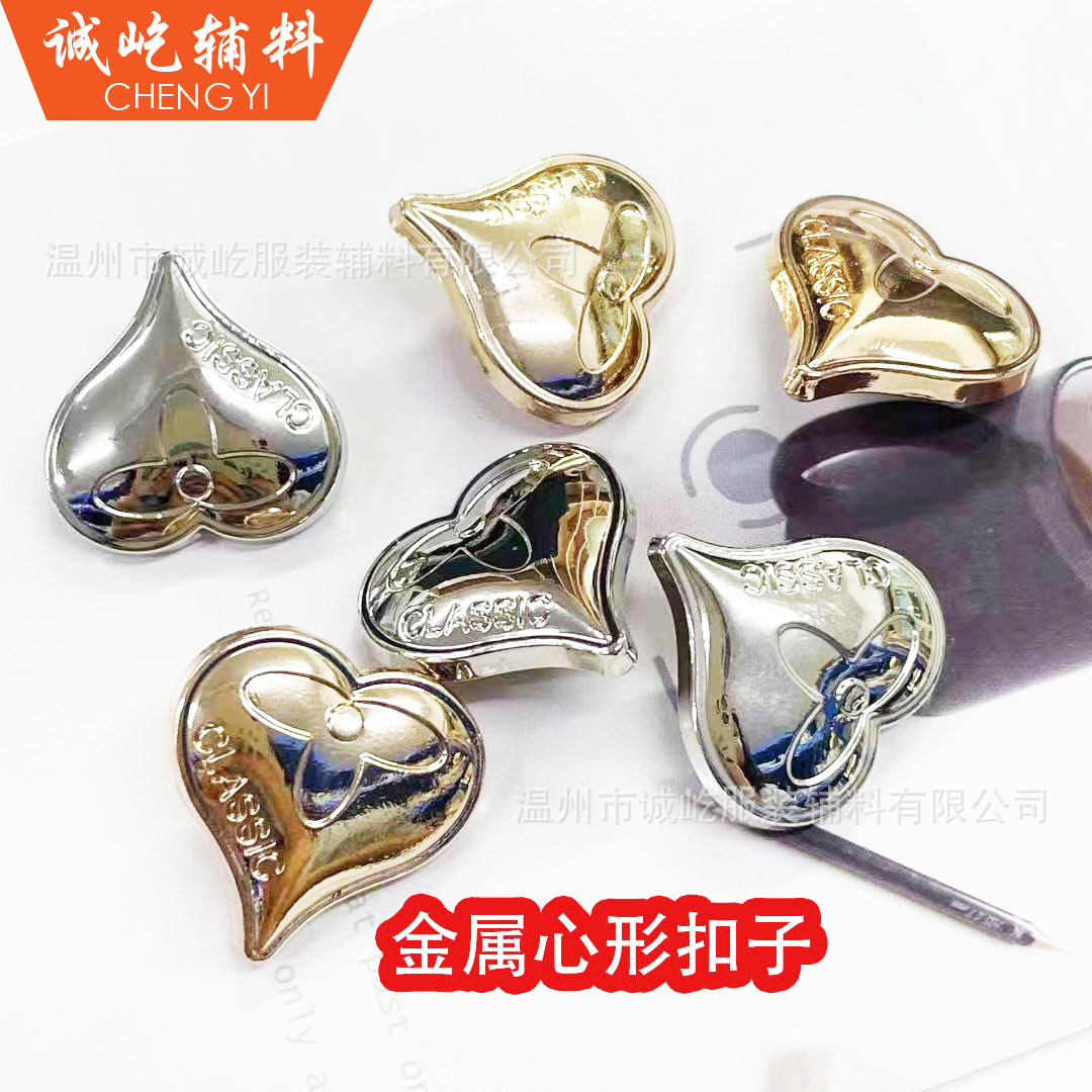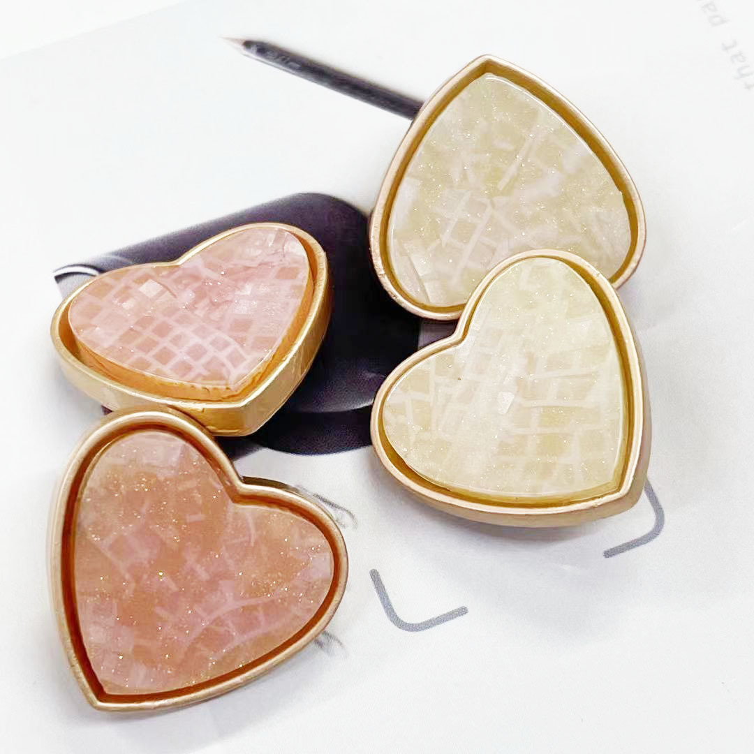 【愛ハート型ボタン】ピンクベージュ桃心ボタン金属樹脂ダブルファッション上着の襟ボタン