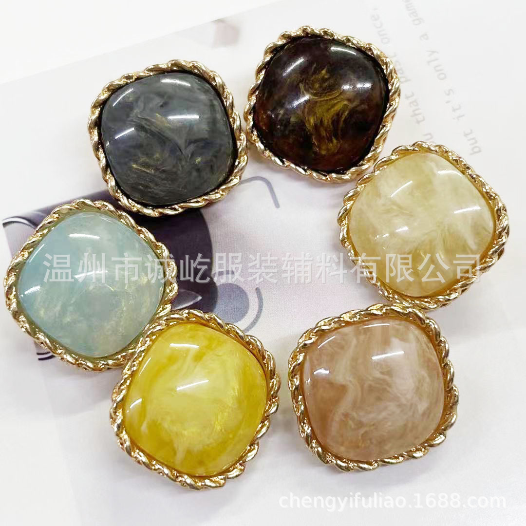 金属樹脂二重組み合わせボタン角型麻花金辺石珠ボタンカシミヤコートドア襟ボタン