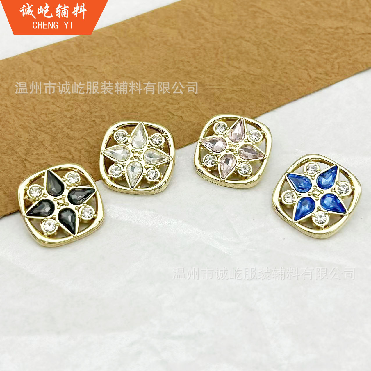 新商品の高級感のある四角形の合金のドリルはオーバーのセーターのニットのニットの小さい香りの風の粗い花のコートの装飾のボタンを掛けます。