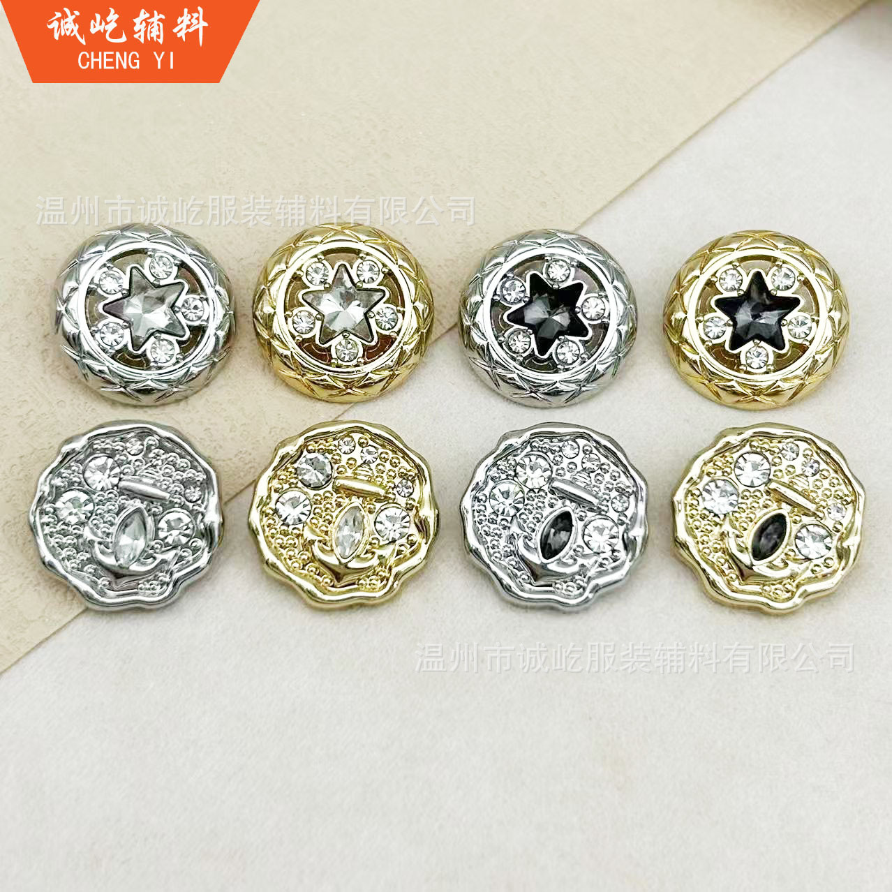 クロスボーダー熱売小香風レース金属入れドリルボタンコートセーターニットツイードコート装飾ボタン