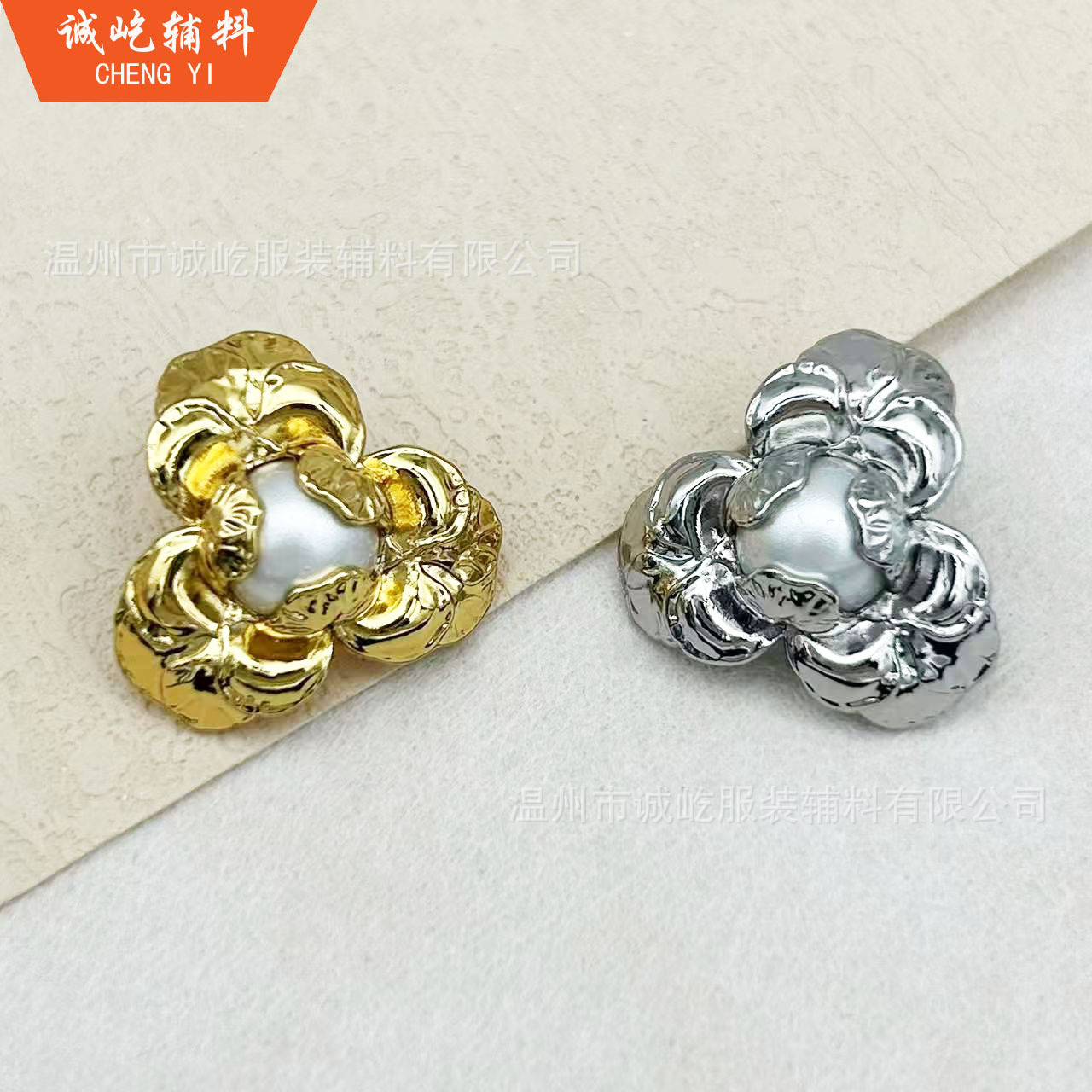 新商品三弁花形真珠飾りボタンコートスーツセーターニットワンピース小香風ボタン