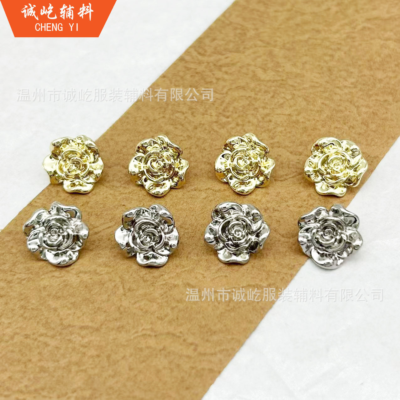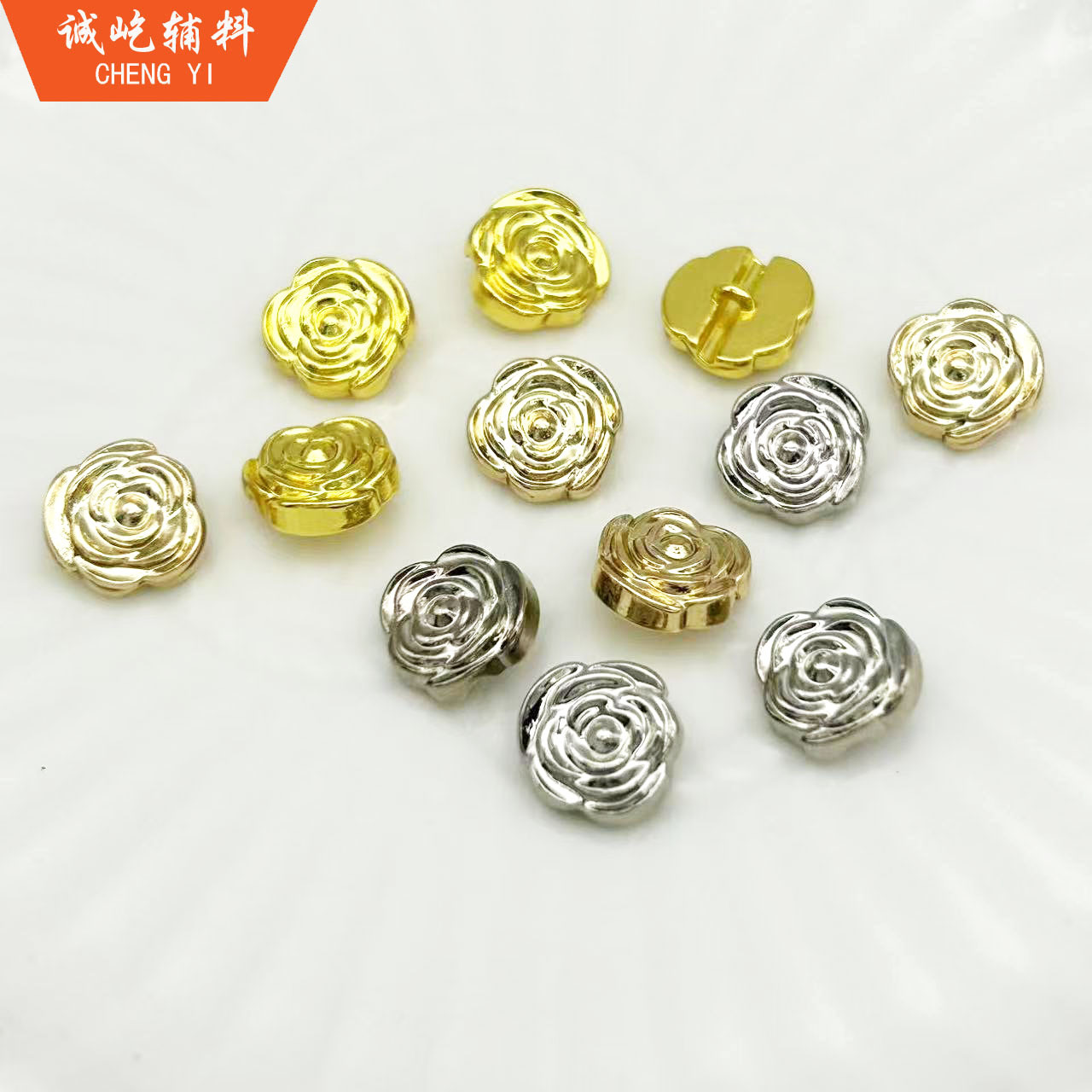 春夏の新型金属のバラの花のシャツの装飾のボタンのセーターのニットのワンピースの前立てのボタンの卸売り
