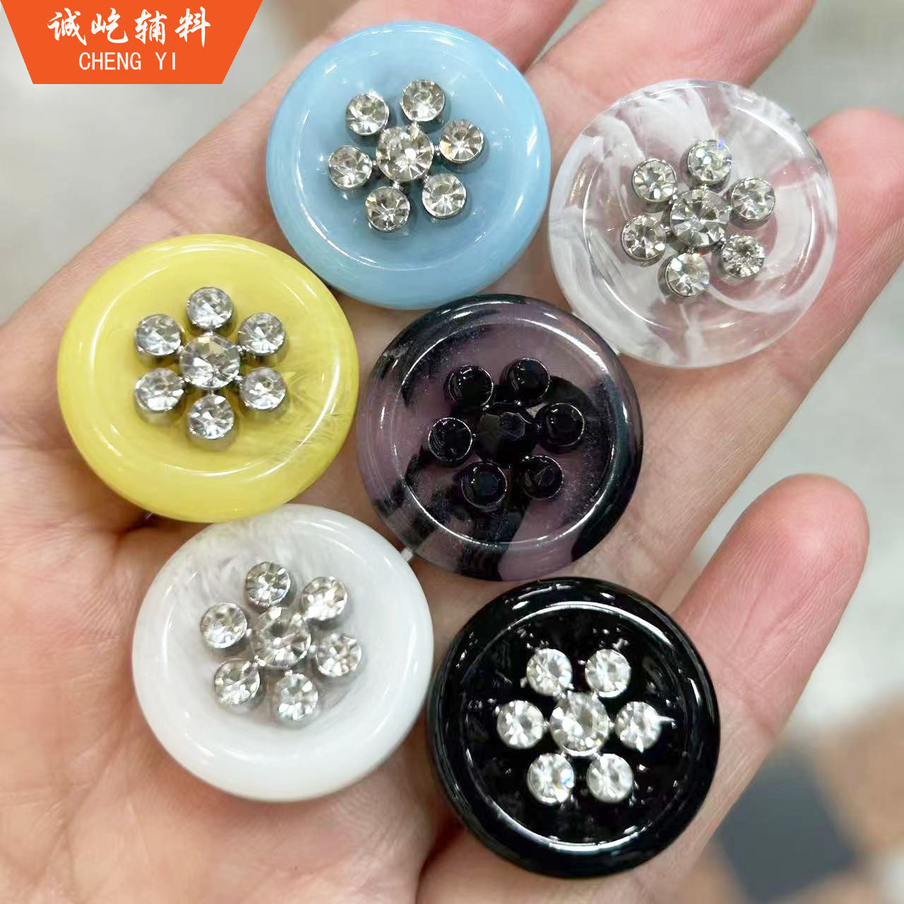 春夏小香風円形樹脂雪花ドリル装飾ボタンコートセーターニットツイード