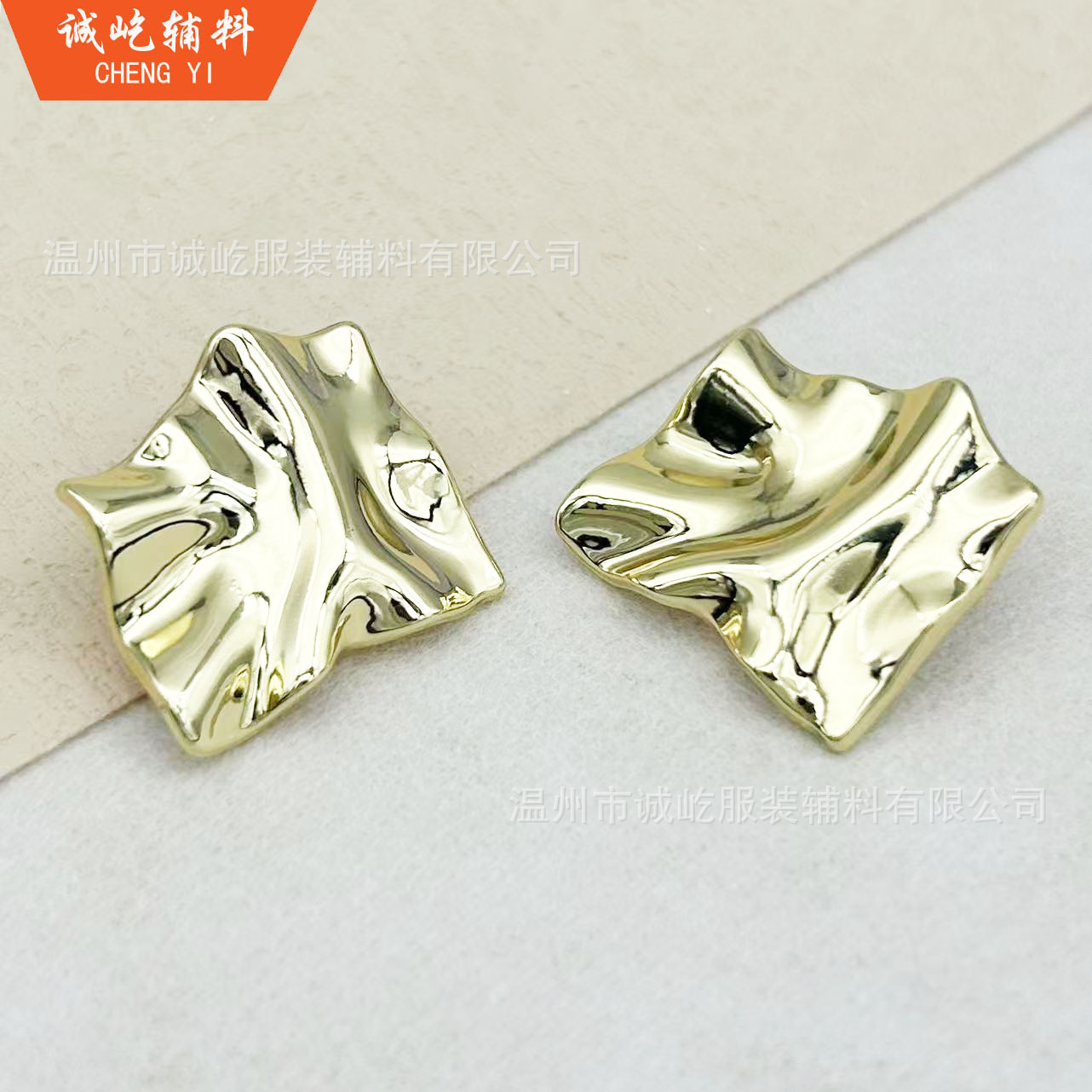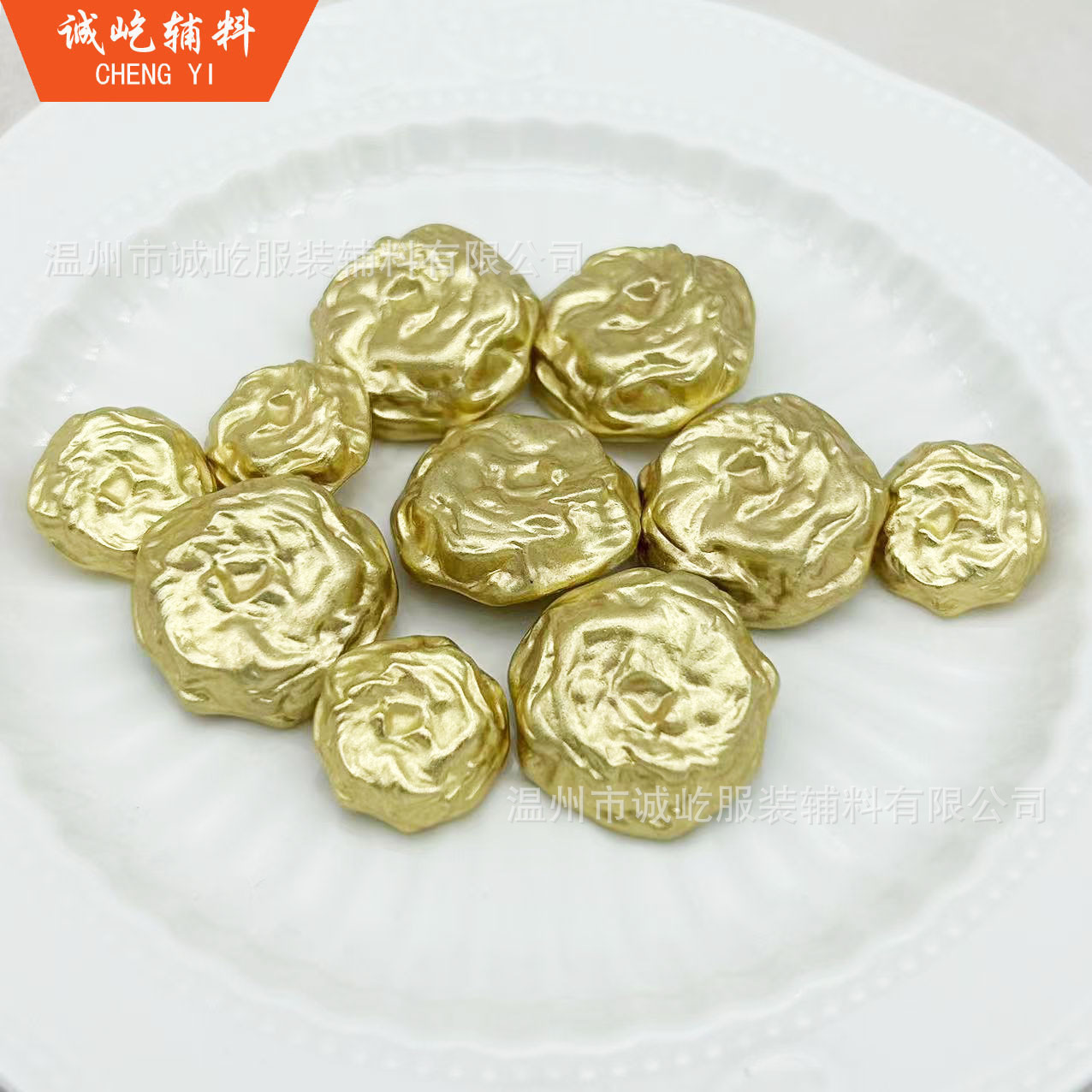 軽い贅沢な金の不規則なしわの面の金属のボタンの毛皮はスーツのオーバーのセーターのニットの装飾のボタンです。